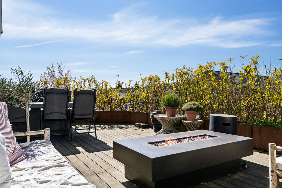 Udendørs får du en stor og velanlagt grund på 2.038 kvadratmeter. Her får du et skønt uderum, der komplementerer boligens stil og skaber rammerne for mange gode stunder under åben himmel.