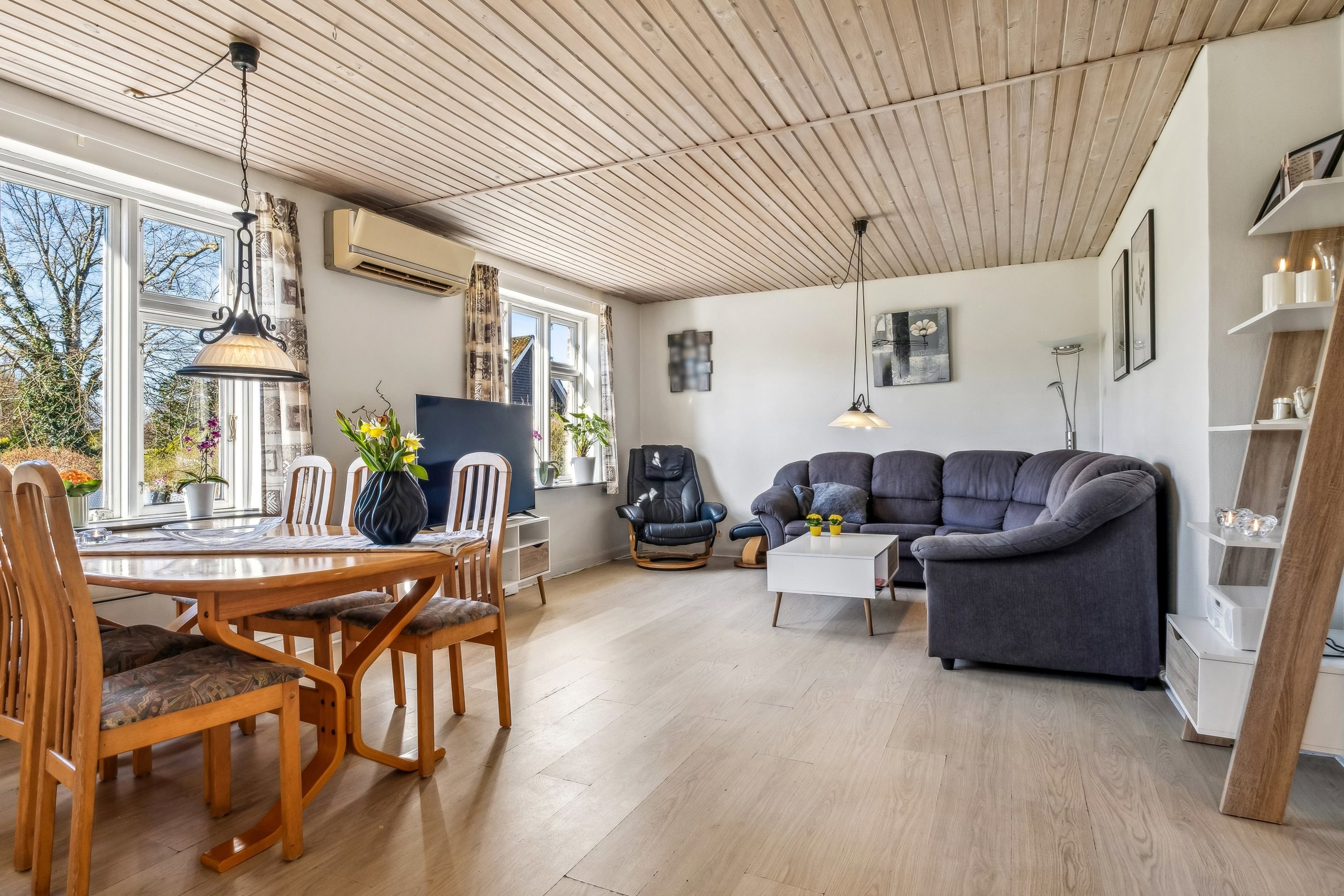 På første sal er der et rummeligt repos, som fungerer som fællesrum eller kan anvendes som et ekstra opholdsområde, f.eks. til kontor eller leg. Her finder du også tre gode værelser, der giver rig mulighed for at indrette med børneværelser, gæsteværelser eller hobbyrum, alt efter behov.