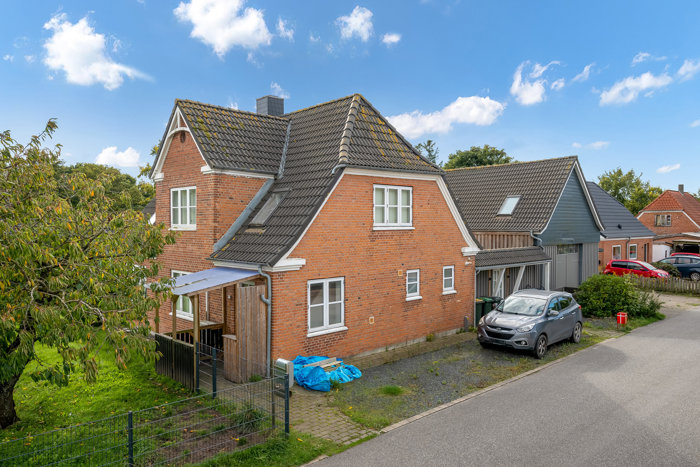 Ejendommen fremstår bundsolid og klassisk med muret facade, plastikvinduer og et sort betontag fra 2013. Opvarmningen sker via gasfyr, suppleret med en hyggelig brændeovn, som skaber både varme og stemning i de kolde måneder. Boligen er opført i to plan og rummer i alt 162 m² bolig – rigeligt med plads til den store familie eller dem, der ønsker fleksible indretningsmuligheder. Grunden er på 932 m² og anlagt primært med græs, hvilket giver god plads til leg, afslapning eller køkkenhave. Mellem huset og den tilhørende garagebygning finder du en ugeneret og hyggelig gårdhave, som skaber en skøn oase i det fri.