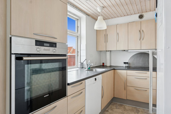 Indenfor bydes I velkommen i entréen, som leder videre til et lyst og sammenhængende opholdsmiljø, hvor stue, køkken og spisestue ligger i naturlig forlængelse af hinanden. Det smukke sildebensgulv i stuen skaber en varm atmosfære, og herfra er der direkte udgang til den murede terrasse og haven. Tag og undertag er udskiftet i 2008.