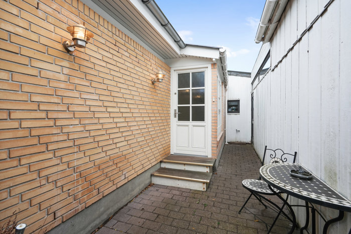 Værelser får I to af, og det ene har direkte adgang til eget badeværelse, der er udført med både kar og bruseniche. Jeres andet baderum tilgår I fra den store, pæne entré, og derudover får I et bryggers. I den forbindelse er udhuset også udstyret med eget toilet.