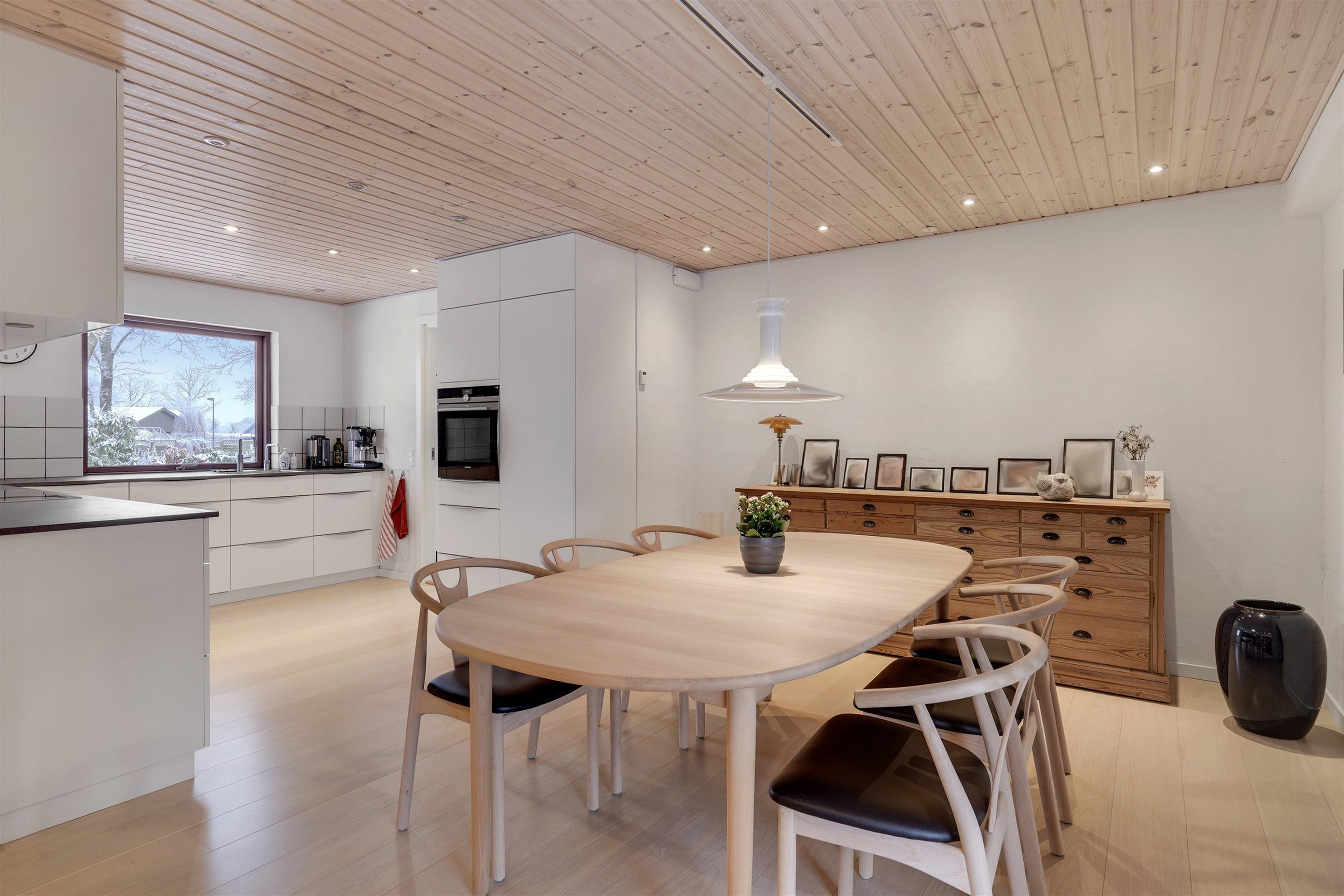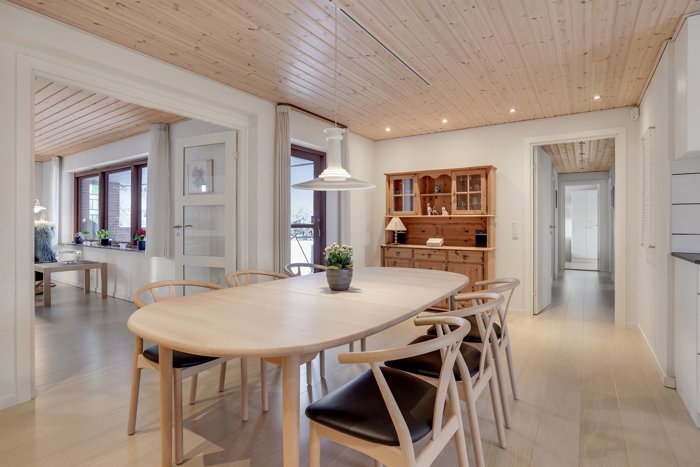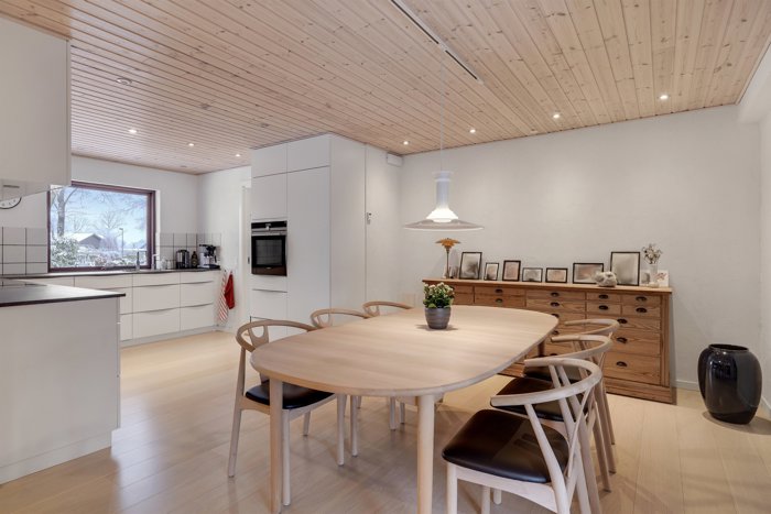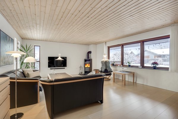 Indenfor mødes man af en funktionel planløsning med et lyst og moderne køkken-alrum, hvor Kvik-køkken og bryggers blev fornyet i 2017 og fremstår tidløse og praktiske i hverdagen. Stuen er rummelig og indbydende med brændeovn og store vinduespartier, der giver et skønt lysindfald og direkte udgang til den vestvendte, integrerede og overdækkede terrasse, som forlænger udesæsonen og indbyder til lange aftener i haven.