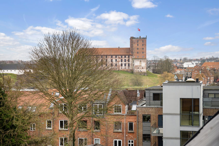 Indenfor mødes I af en lys og imødekommende atmosfære. Stueplan byder på et funktionelt køkken med gode arbejdsflader og et åbent, let udtryk. Herfra er der naturlig forbindelse til boligens opholdsrum, hvor lyset strømmer ind gennem vinduerne og skaber en varm og hjemlig stemning. Stuen er indretningsvenlig med plads til både sofaområde og spiseplads – et naturligt samlingspunkt for familien. Fra stue og spiseområde er der en skøn udsigt til Koldinghus.
