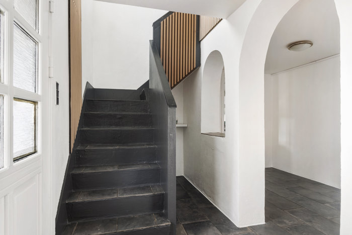 På førstesalen finder du tre gode værelser samt et stort og flot badeværelse med både bruseniche og badekar – perfekt til både travle morgener og afslappende aftener.