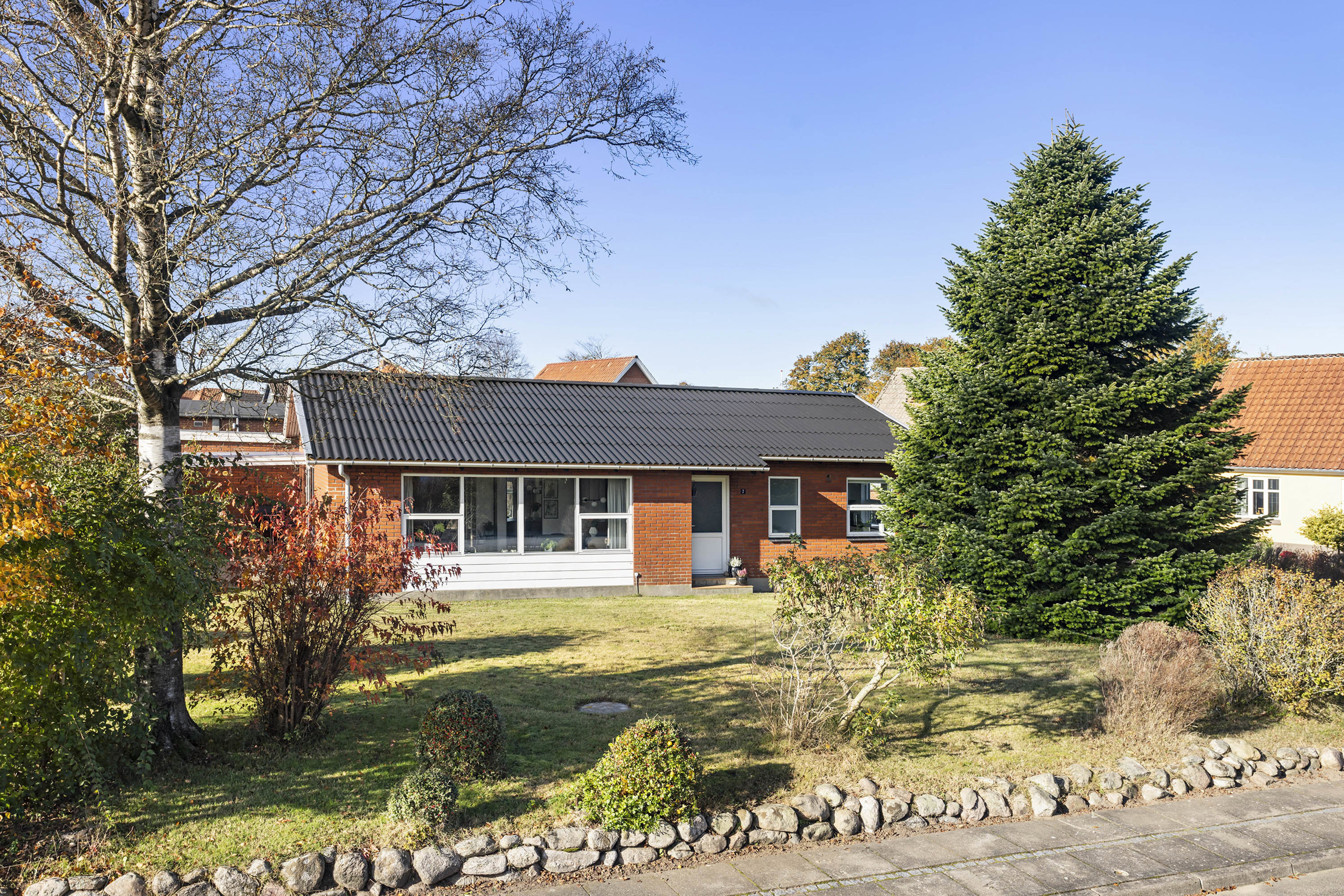 Beliggenheden er ideel for dig, der ønsker ro og trygge omgivelser, men stadig vil være tæt på hverdagens bekvemmeligheder. Fra huset er der blot 550 meter til Meny, hvor du kan handle alt til dagligdagen, og kun 800 meter til byens skole, så børnene nemt kan gå eller cykle selv. I nærområdet finder du desuden smukke naturområder, åbne marker og stier til gå- og cykelture.