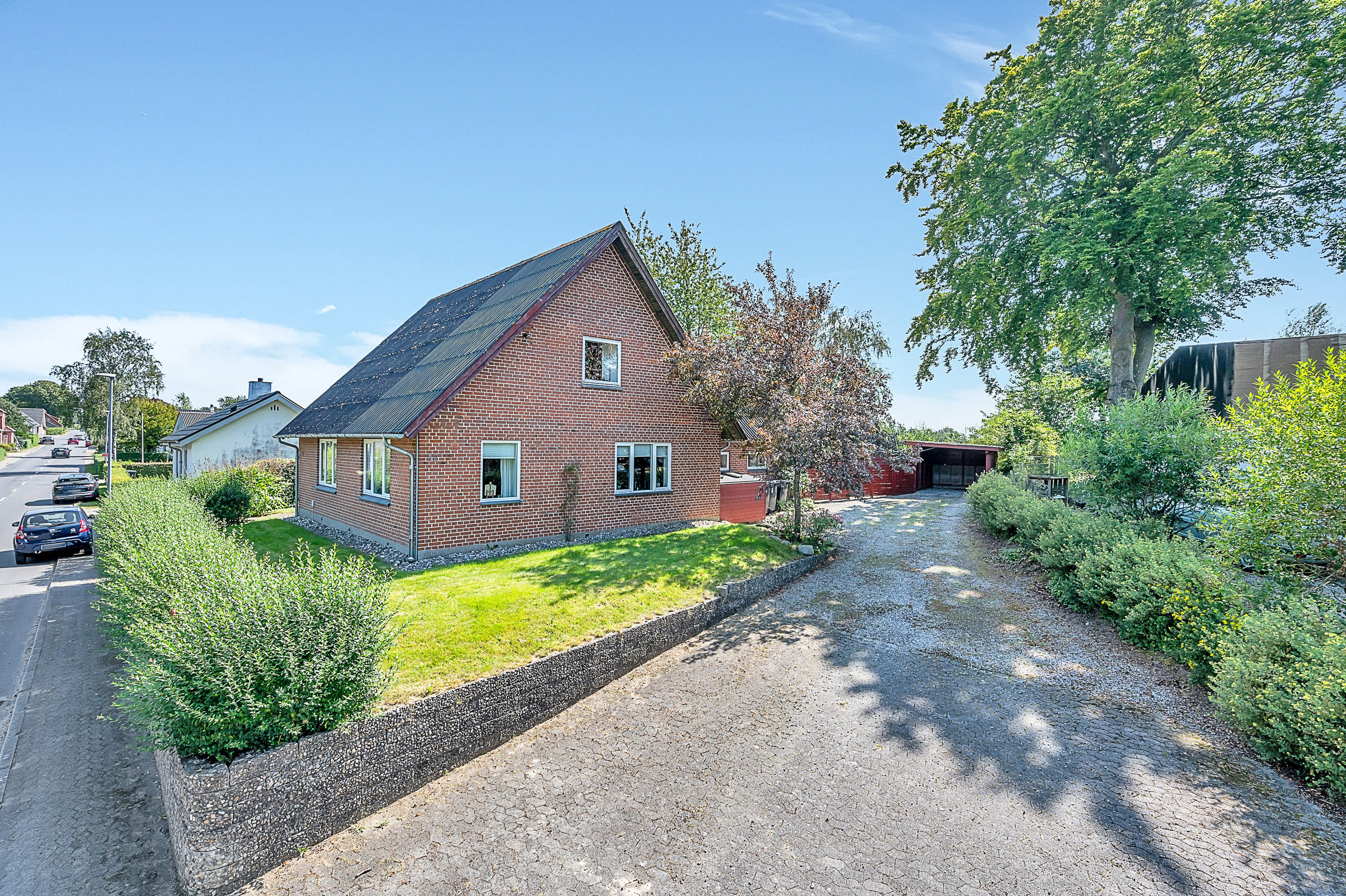 Til ejendommen hører desuden haveskur og en bred indkørsel med plads til flere biler.