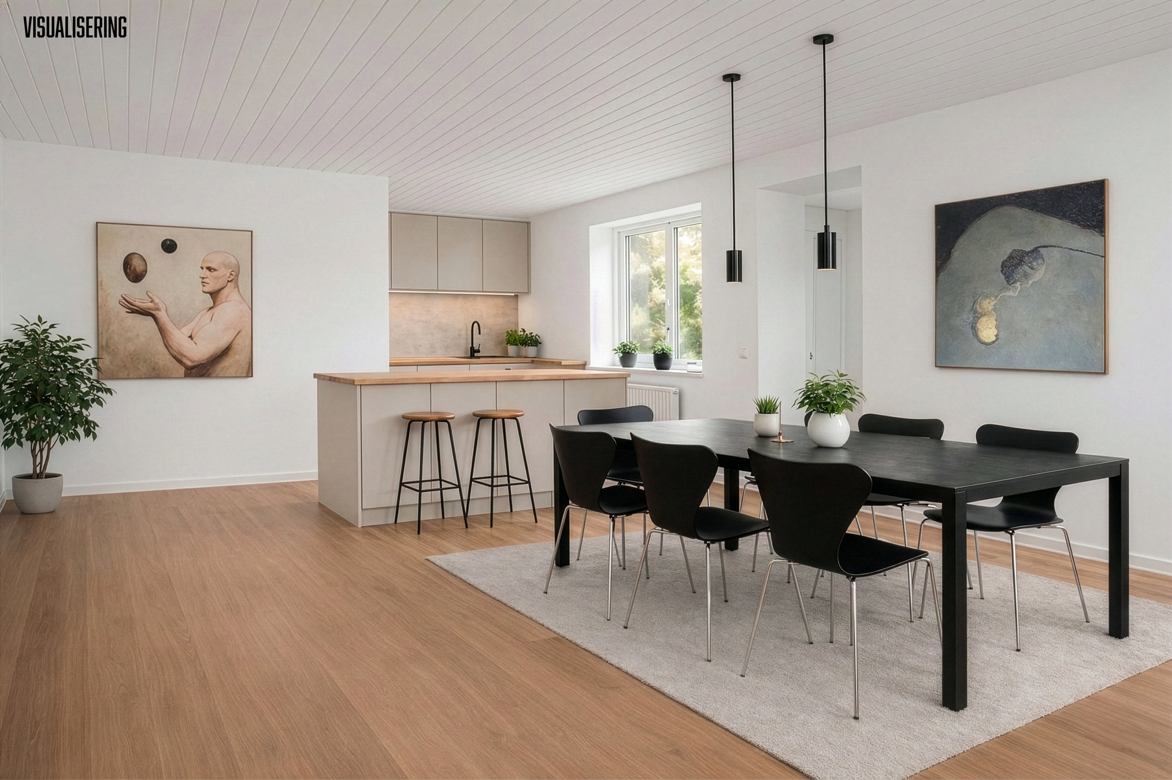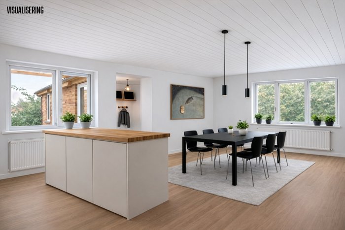 Visualisering af køkken/alrum på foto og plantegning