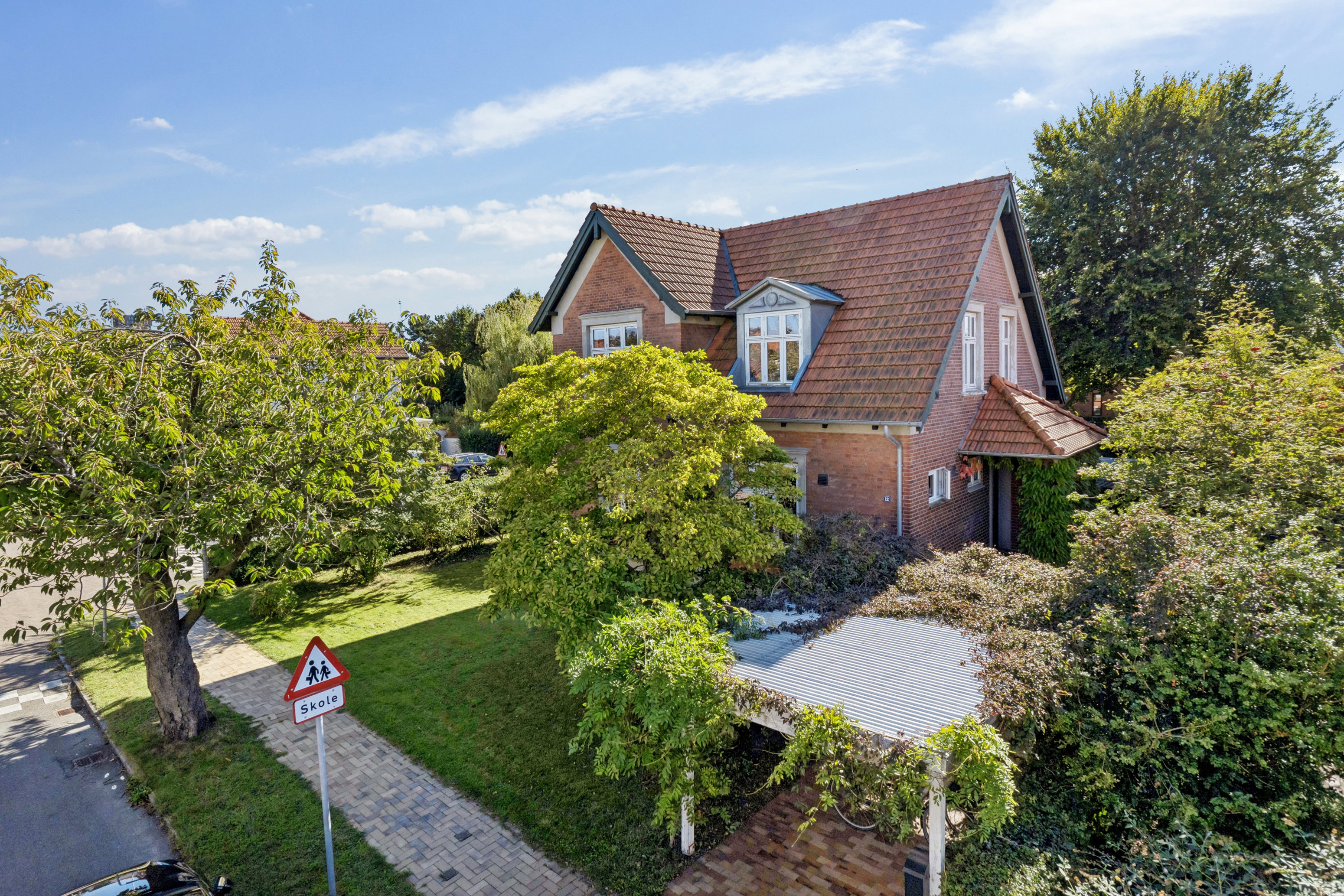Til ejendommen hører en skøn sydvendt fliseterrasse samt en fantastisk parklignende have, som byder op til utallige timers leg. Herudover er der en praktisk carport til bilen samt 2 rummelige haveskurer til cykler og haveredskaber.
