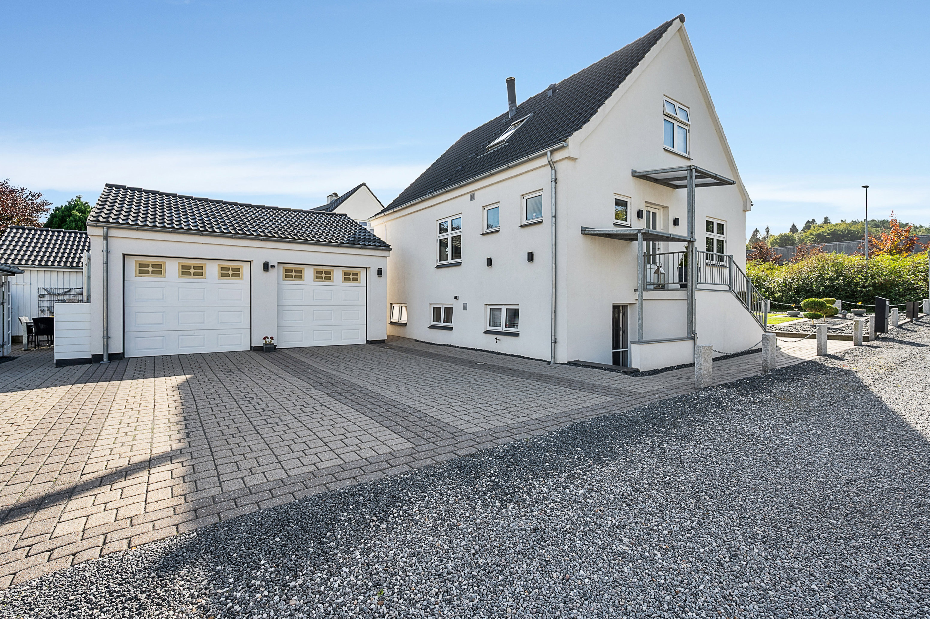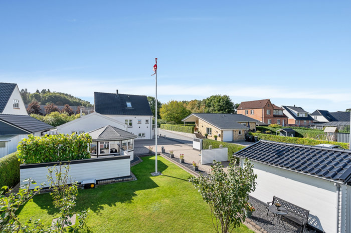 Haven er anlagt med stor omhu og fremstår utrolig velholdt. Her finder du både en garage med dobbelt port og værksted, et hyggeligt havehus samt en dejlig pavillon, hvor sommeraftenerne kan nydes i fulde drag.