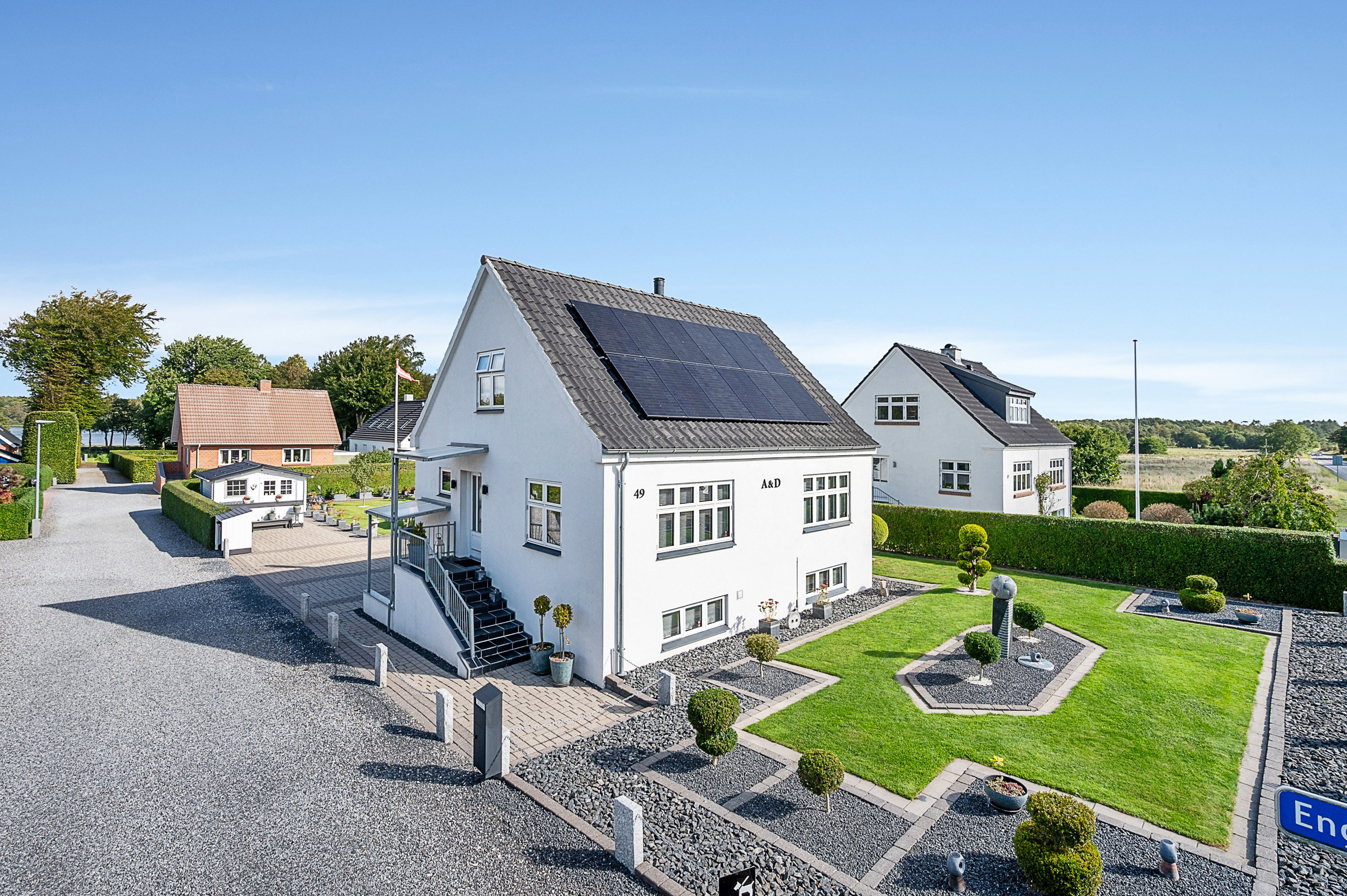 Østre Langgade 49 i Ans er en særdeles flot og velholdt villa, der emmer af charme og kvalitet. Huset er opført i 1948 og byder på 134 m² bolig, som gennem årene er blevet moderniseret med respekt for husets stil. Blandt de større forbedringer kan nævnes nyt tag fra 2004, nyere vinduer fra de seneste par år, samt en netpudset og malet facade fra 2015, hvilket giver ejendommen et tidløst og indbydende udtryk. I 2022 er der installeret en moderne luft-luft varmepumpe i stueplan, og der er desuden solceller på taget fra for 2-3 år siden, som bidrager til et lavere energiforbrug.