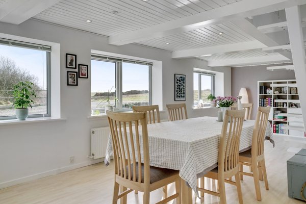 Udendørs venter en hyggelig have med god plads til både leg og afslapning. Haven er let at holde og ligger ugeneret med en skøn udsigt til de omkringliggende marker, hvilket skaber en helt særlig ro. Terrassen indbyder til udeliv i sommerhalvåret, og her kan du nyde solen og de naturskønne omgivelser i fredelige rammer.
