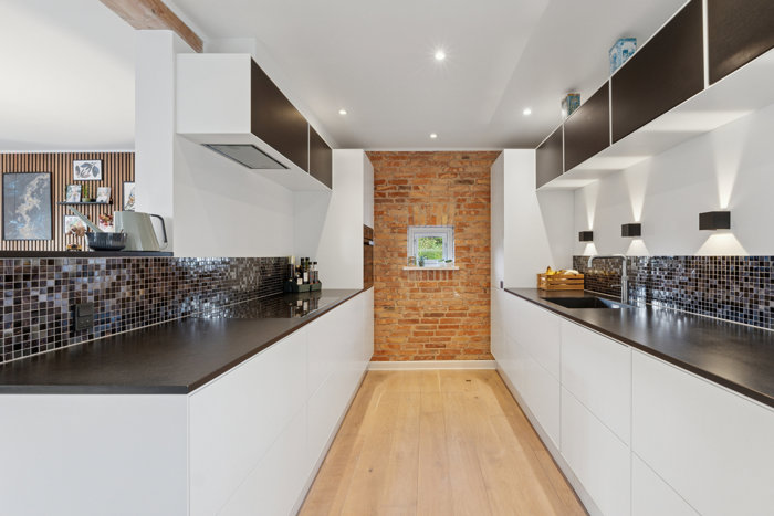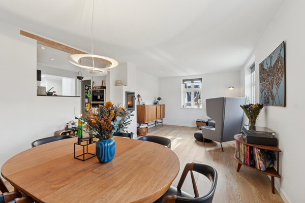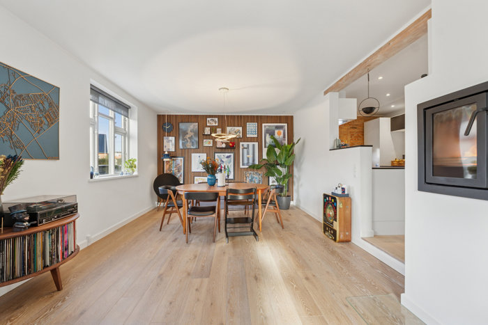 Villaen fremstår indflytningsklar med en veludført tilbygning fra 2016, som giver ekstra plads og masser af lys takket være ovenlysvinduerne. Lyset strømmer igennem til hjemmets hjerte, det stilrene Svane-køkken med kvalitetsmaterialer og lækre hårde hvidevarer. I forlængelse af køkkenet ligger stuen hvor man nemt kan indrette sig og nyde den væghængte pejseindsats.