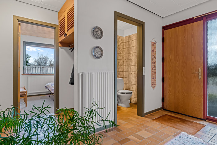 Boligen byder desuden på to badeværelser samt et gæstetoilet, hvilket giver en praktisk hverdag – særligt i en travl familie, hvor flere skal ud ad døren på samme tid. Planløsningen gør det let at indrette huset efter behov, og samtidig er her en solid base, hvor eventuelle opdateringer kan foretages løbende.
