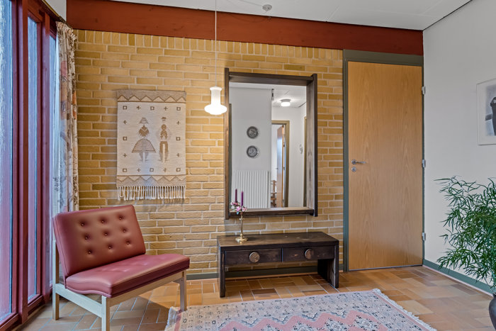 På en rolig og attraktiv villavej i Holstebro ligger denne velholdte villa på 180 m², opført i 1973 som et gedigent parcelhus i klassiske materialer med murede facader og tegltag. Allerede ved ankomsten mærker man, at her er tale om en bolig, der er passet og plejet gennem årene. Ejendommen har kun haft én ejer siden opførelsen, hvilket tydeligt afspejles i den gode vedligeholdelsesstand og den solide kvalitet i både byggeri og indretning. Indkørslen leder frem til huset og skaber en rar og indbydende ankomst til hjemmet. Her venter en bolig med god plads til familielivet – og samtidig mulighed for, at kommende ejere kan modernisere i eget tempo og sætte deres personlige præg.