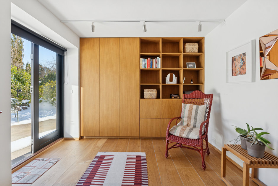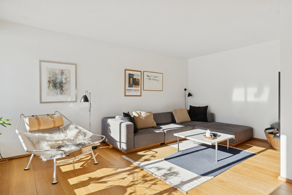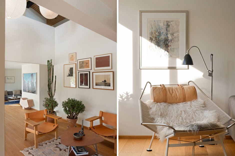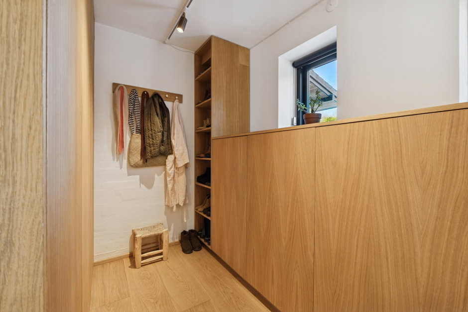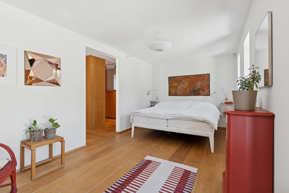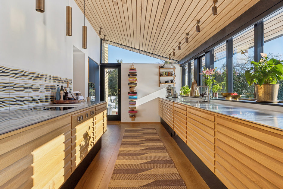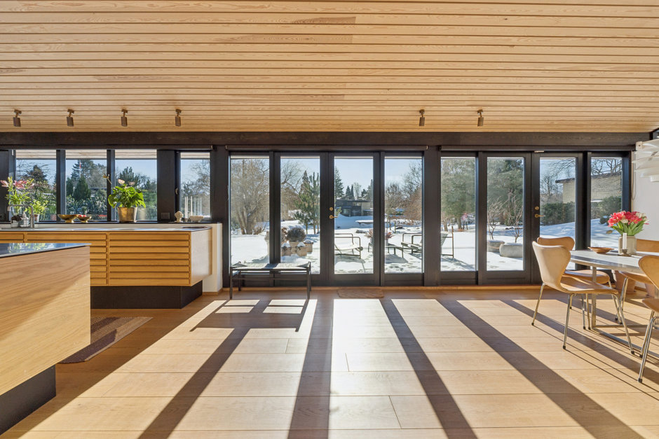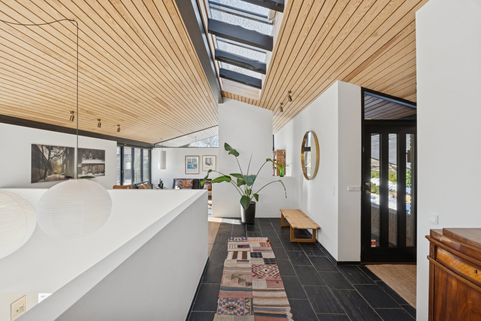 Villaen som oprindeligt er tegnet af Klaus Fussing og Eric Laraignou og opført i 1971, fremstår i dag nænsomt men gennemgribende renoveret, og energioptimeret, med stor respekt for den klassiske 70’er-arkitektur. Materialerne er nøje udvalgt med snedkerløsninger i eg, Vola armaturer og naturlige overflader som gennemgående elementer, mens gulvvarmen i hele underetagen, sikrer komfort året rundt.