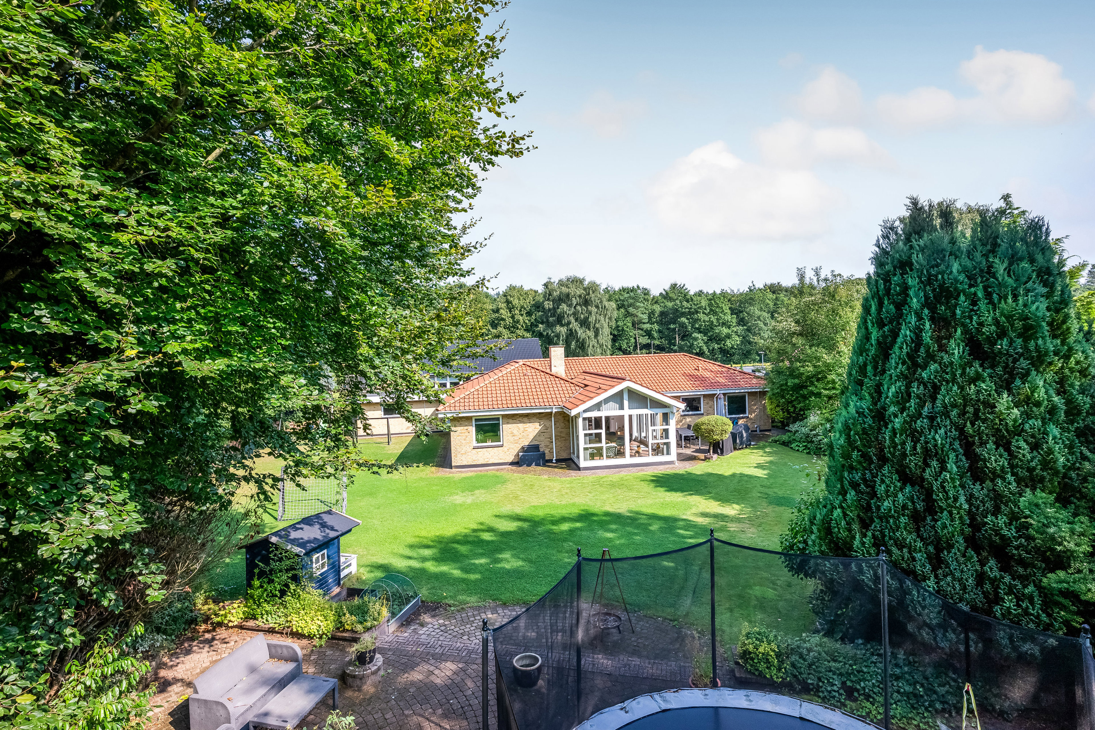 Når du ankommer, mødes du af en indbydende bolig omgivet af grønne omgivelser og en behagelig ro, som straks mærkes. Beliggenheden er noget helt særligt – naturen er lige udenfor døren, men du bor stadig i bekvem afstand til alt det, der gør hverdagen let: skoler, daginstitutioner, indkøb, kultur og byliv.