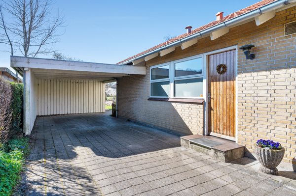 Udenfor finder du en nydelig, overskuelig have med god plads til leg og boldspil – perfekt til børnefamilien. Haven kræver minimal vedligeholdelse, så du får mere tid til at nyde den. Til ejendommen hører desuden en carport samt et skur til opbevaring af haveredskaber og cykler.
