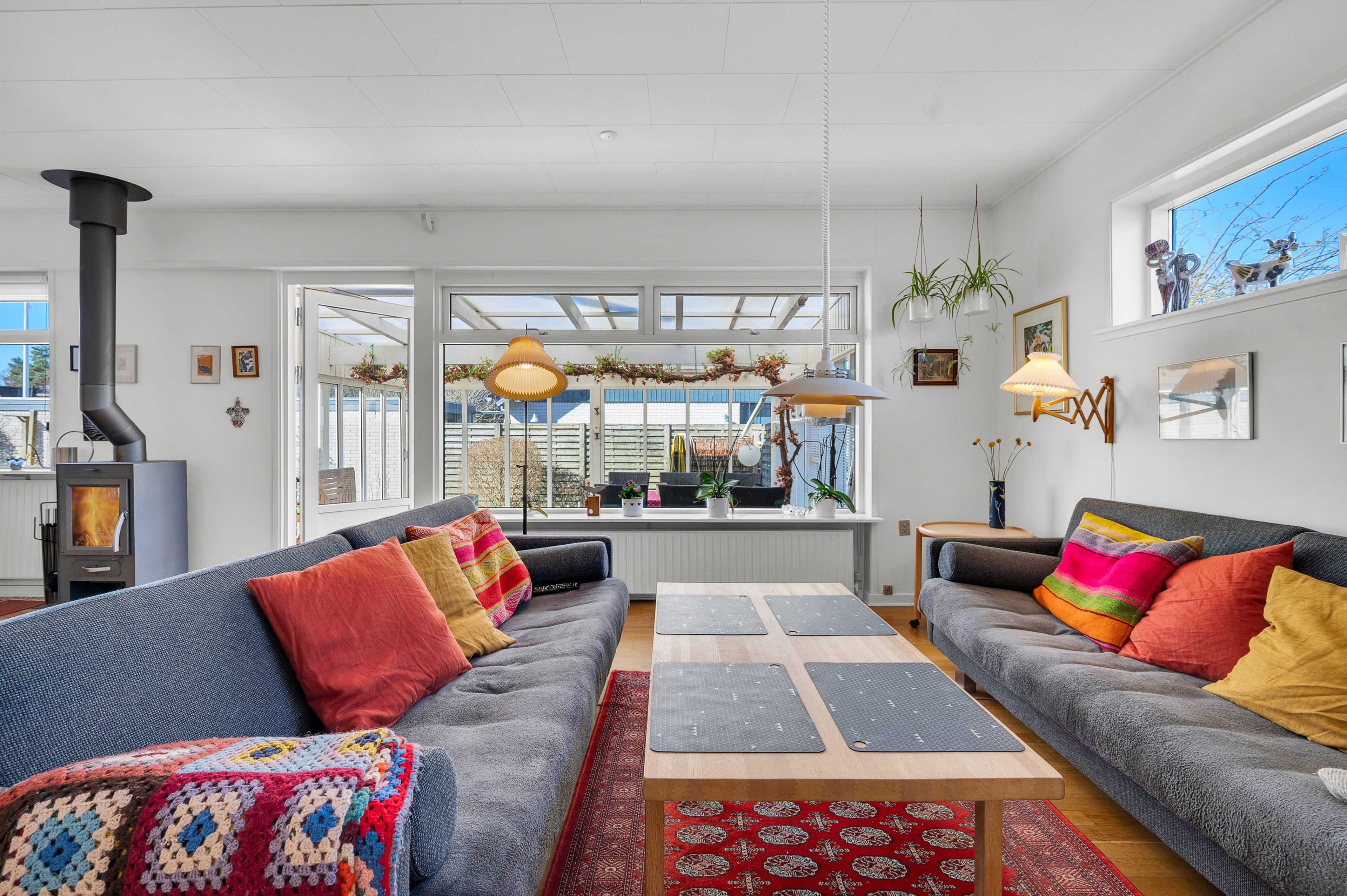Når du træder ind i hjemmet, mødes du af en praktisk entré med adgang til et gæstetoilet – perfekt til familiebesøg og daglig brug. Herfra bevæger du dig ind i det indbydende og lyse opholdsmiljø, hvor stue og spisestue smelter sammen i ét. De store vinduespartier sikrer et flot lysindfald, og herfra er der direkte udgang til en hyggelig udestue, som forlænger sæsonen og skaber en skøn forbindelse til haven.
