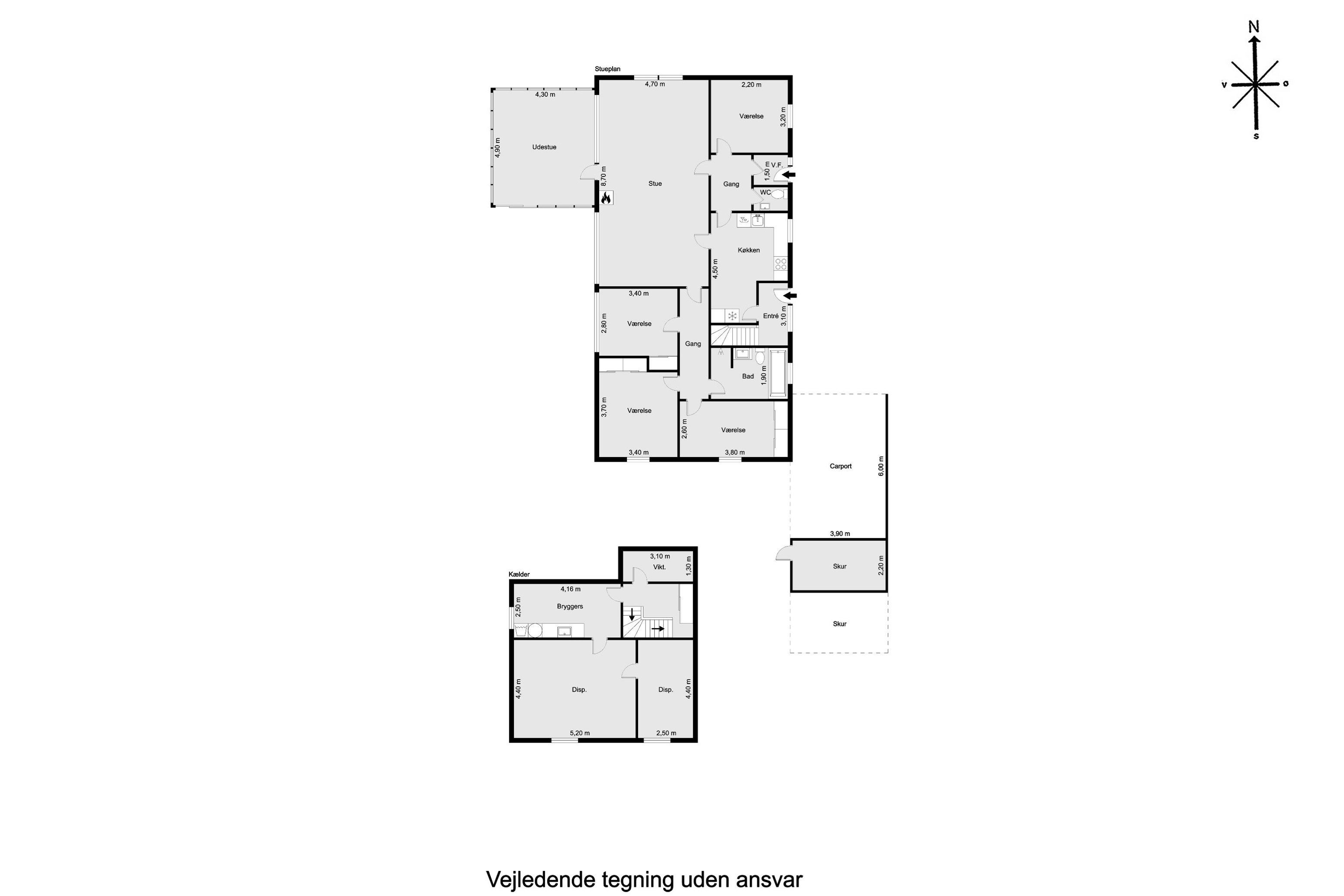 Kælderen rummer et stort disponibelt rum med værksted – oplagt til hobbyaktiviteter, opbevaring eller måske som teenageafdeling. Herudover er der et praktisk vaskerum og et viktualierum, der gør det nemt at holde orden og organisere hverdagens fornødenheder.