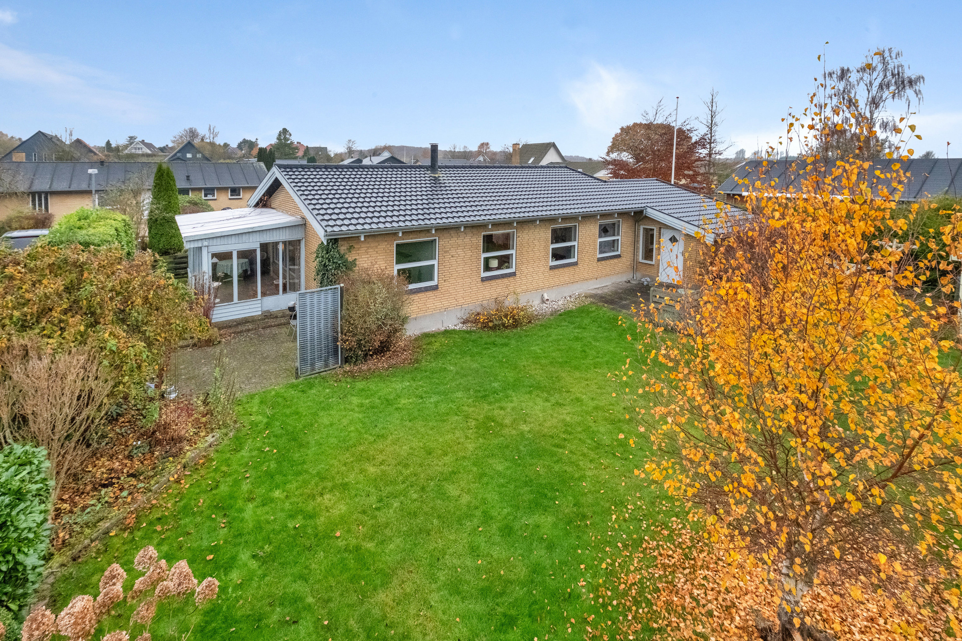 I bliver ejere af en nydelig etplansvilla i gule sten fra 1965. Den fremstår i pæn og velholdt stand, men har behov for opdateringer, hvis I foretrækker at bo i tidssvarende rammer. I kan dog sagtens flytte ind i huset, som det er, så hvis I vil opdatere, kan I gøre det i jeres eget tempo.