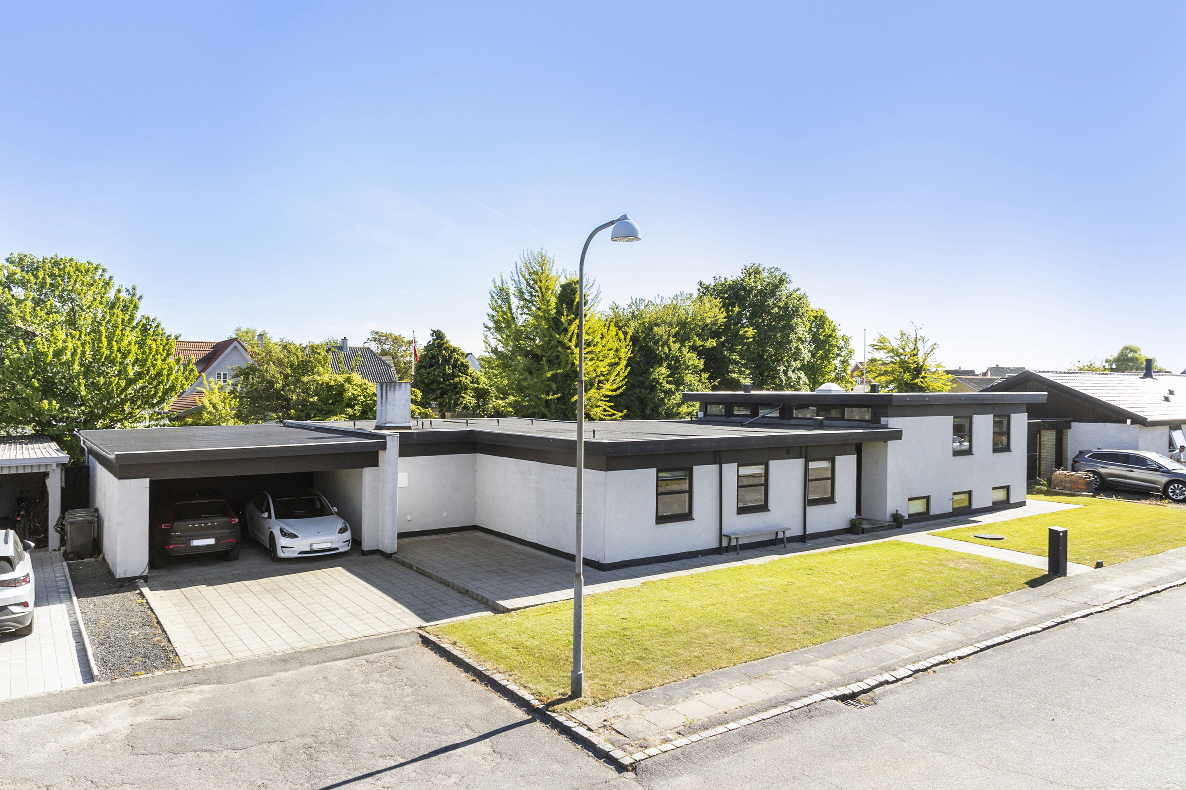 Udenfor venter en skøn, sydvendt og helt ugenert overdækket terrasse – det perfekte sted at nyde lange sommeraftener og hyggelige stunder med familie og venner. Haven er enkelt anlagt og let at passe med græsplæne, enkelte buske og træer. Ejendommen byder også på en rummelig dobbelt carport og et stort udhus med masser af plads til både opbevaring og hobbyprojekter. Kort sagt - En moderne og velholdt bolig i smukke omgivelser, hvor du kan flytte direkte ind og føle dig hjemme fra dag ét.