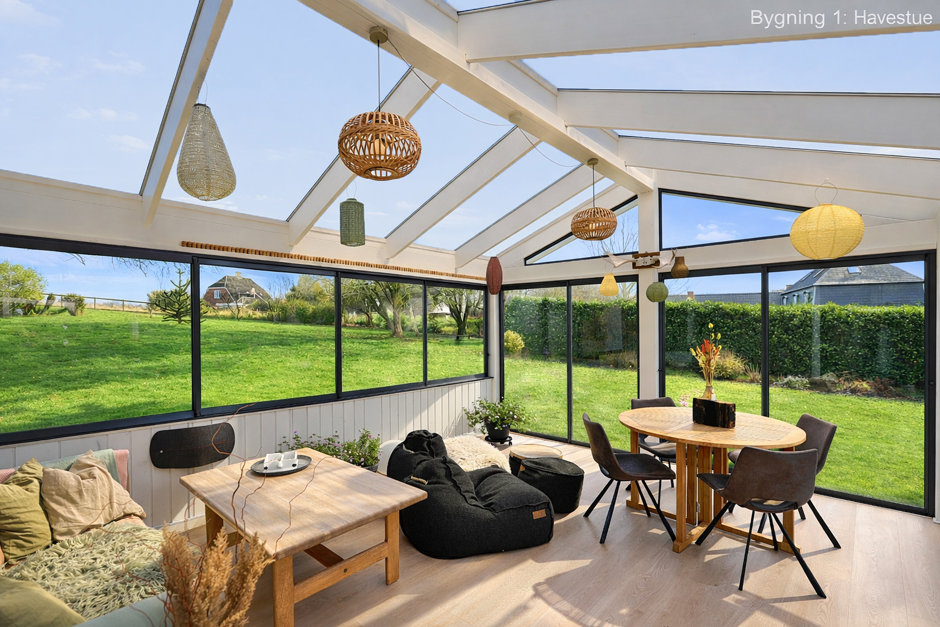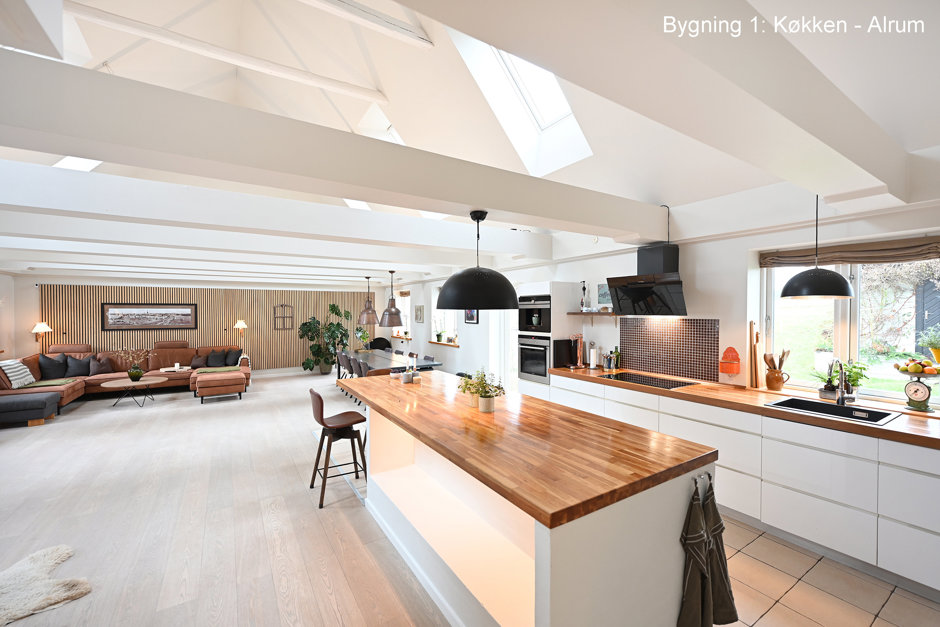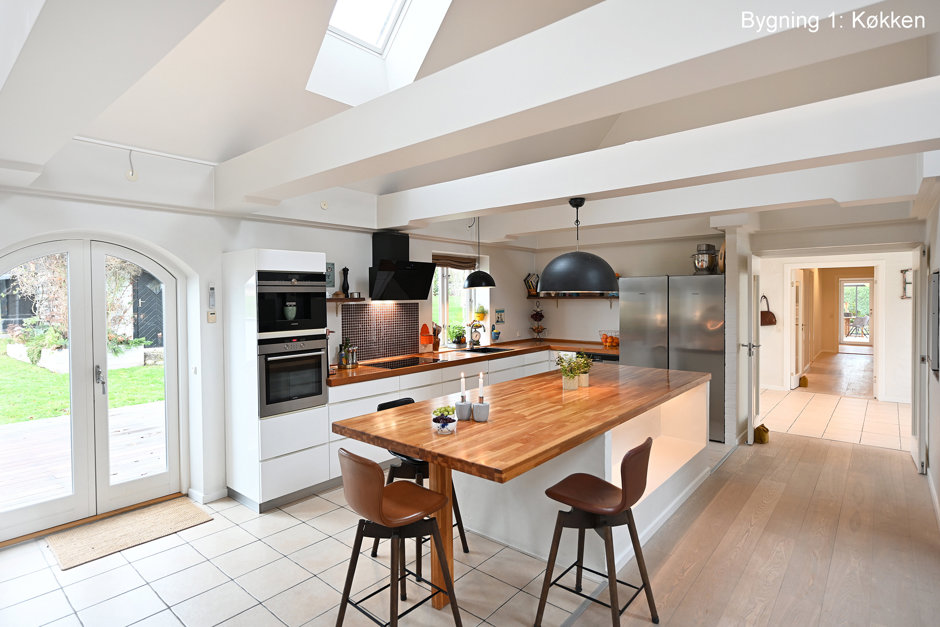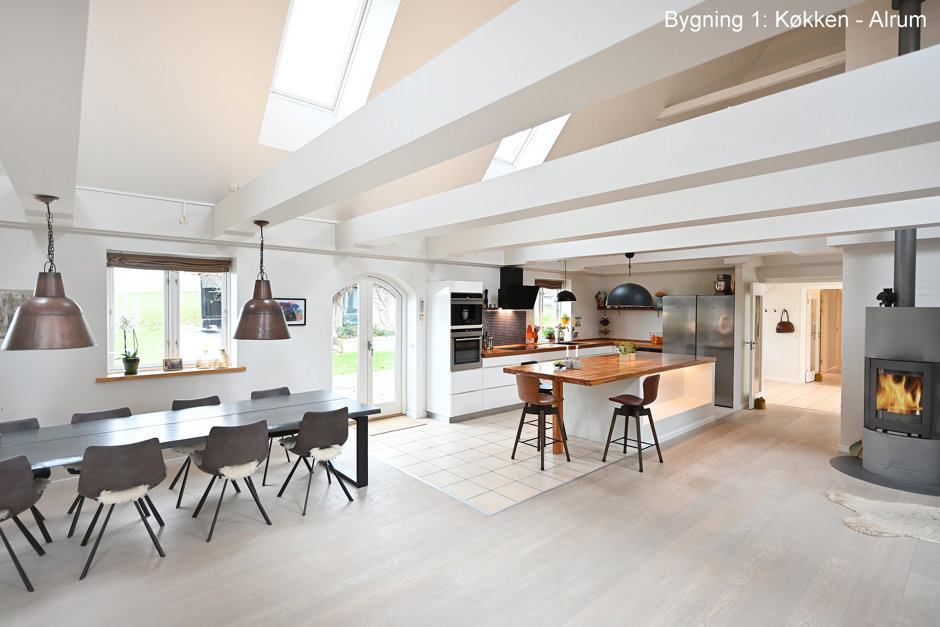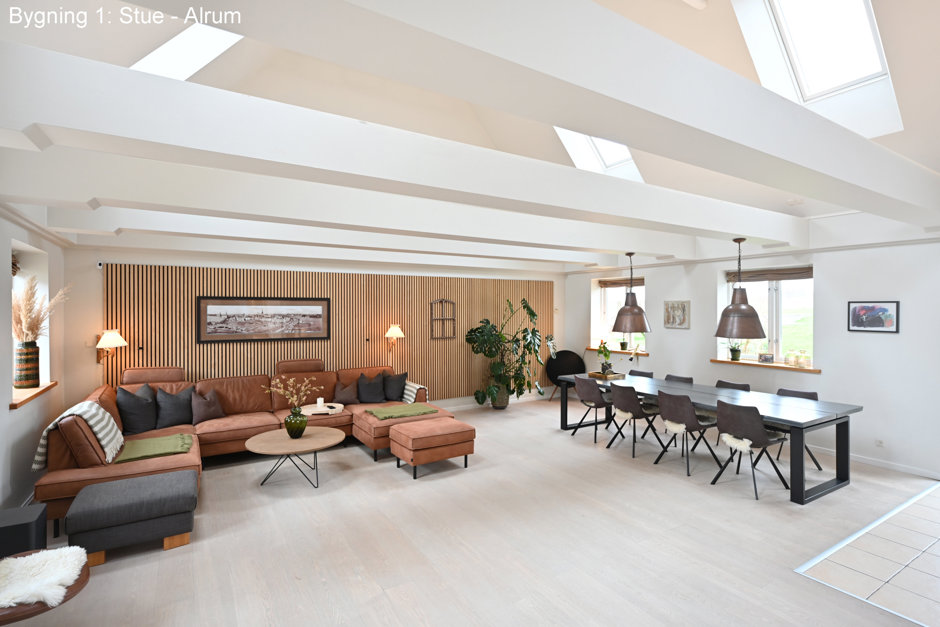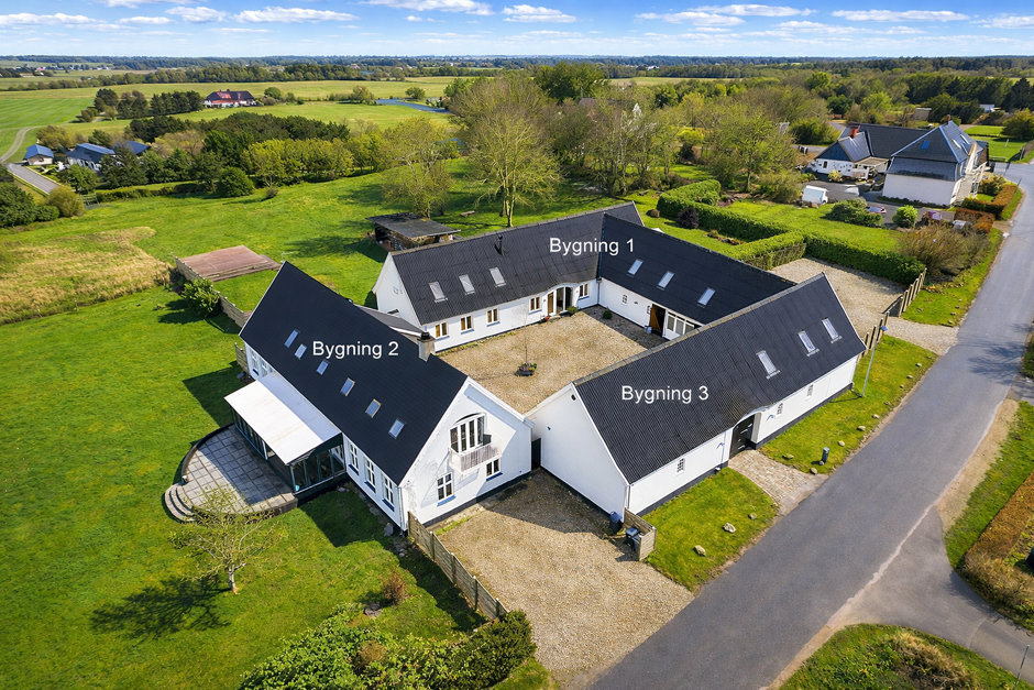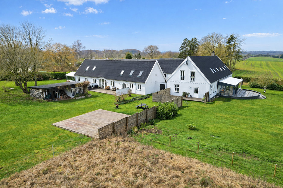 Ejendommen rummer hele to fuldt selvstændige boliger - Hovedhuset byder på 335 m² bolig, mens det andet hus rummer hele 254 m². De to huse kan bruges hver for sig – perfekt til to generationer, udlejning eller bofællesskab – men de kan også sammenbygges, hvis man ønsker én meget stor bolig. Begge huse er gennem renoverede og fremstår i dag i flot, moderne og indflytningsklar stand. Her er der tænkt på både komfort, kvalitet og drift. Det nye jordvarmeanlæg sikrer lave varmeudgifter, og sammen med den grundige istandsættelse giver det ejendommen et flot energimærke B – noget, der er helt usædvanligt for en landejendom i denne størrelse.