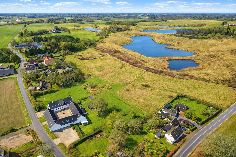 Grunden er på hele 2,1 hektar, og her er god plads omkring bygningerne, udsigt til åbne marker og en skøn fornemmelse af privatliv. For dem, der ønsker endnu mere jord, er der mulighed for at tilkøbe op til 13 hektar ekstra, hvilket åbner for alt fra hestehold, jagt og dyrehold, badning i de smukke søer eller fritidslandbrug.