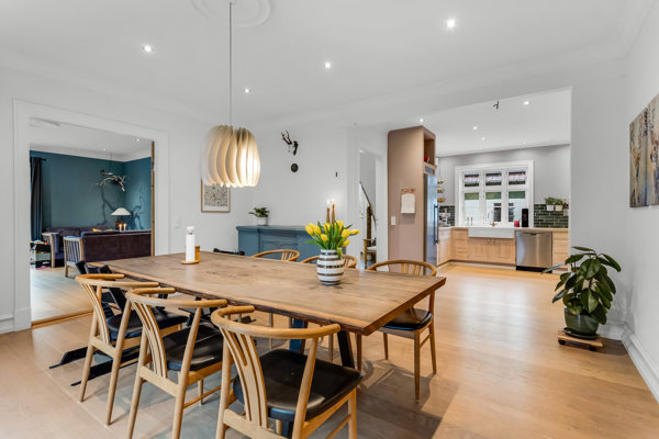 Ejendommen har gennemgået en omfattende renovering, hvor bl.a. luft-til-vand varmepumpe, gulvvarme og solceller er etableret – alt sammen med fokus på energieffektivitet og lavere driftsomkostninger. Trods moderniseringen står huset stadig med masser af sjæl, høj loftshøjde og den solide byggestil, man kun finder i gennemførte huse fra tiden omkring 1916.