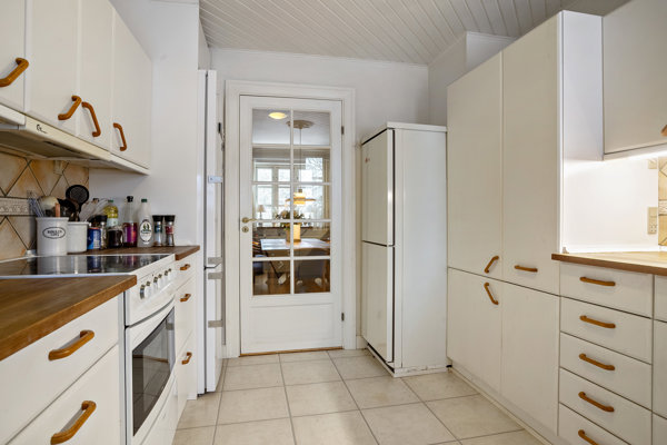 Boligen byder i stueplan velkommen til to stuer med stukkanter, der er forbundet af fløjdøre og med dobbeltdøre ud til haven. I stueplan er der desuden køkken, badeværelse og to entréer med hver sin ind-og udgang. Ovenpå er der et stort soveværelse på næsten tyve kvadratmeter og foran dette en endnu større stue med trappeopgang og vinduer til tre sider.