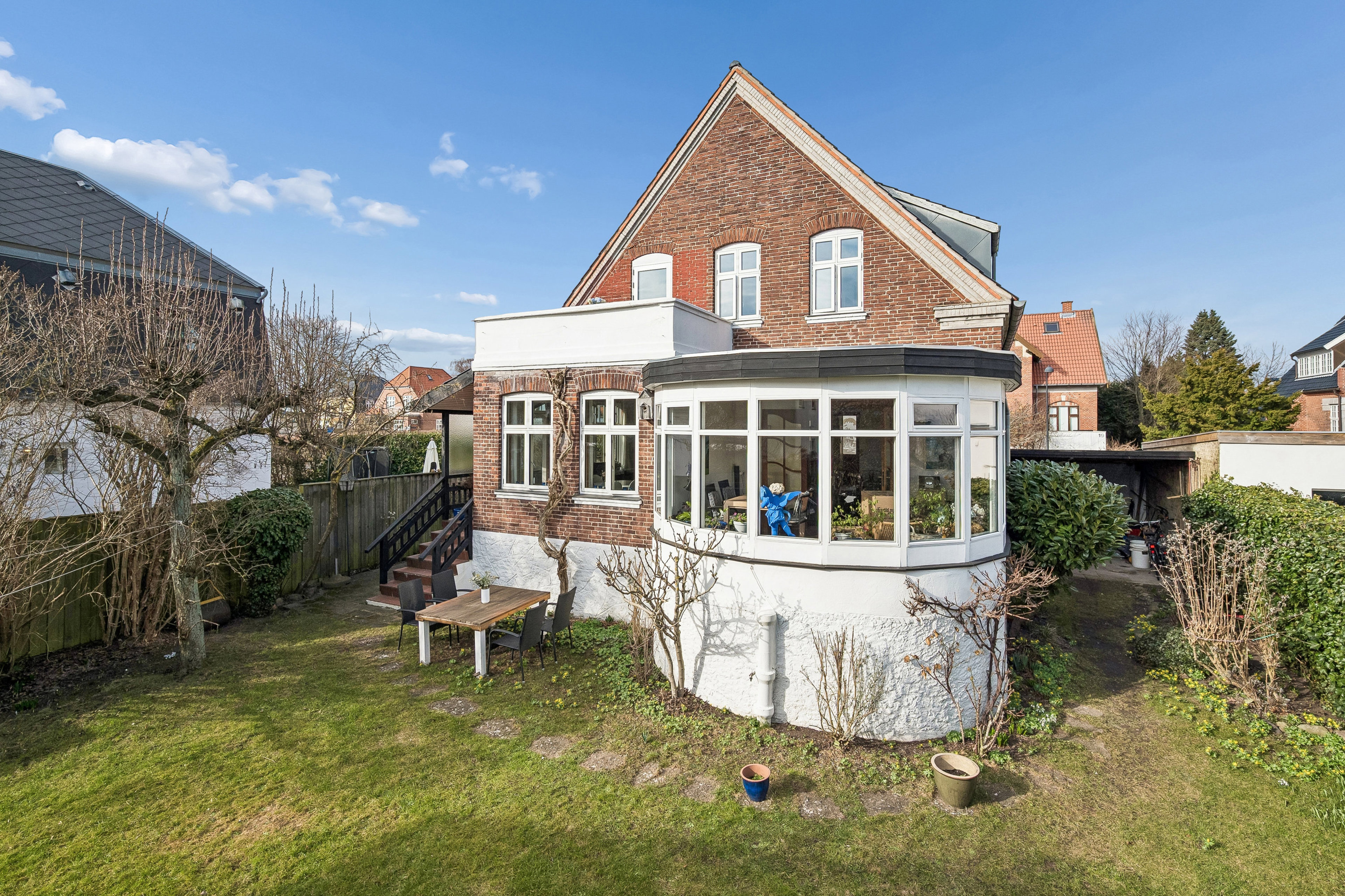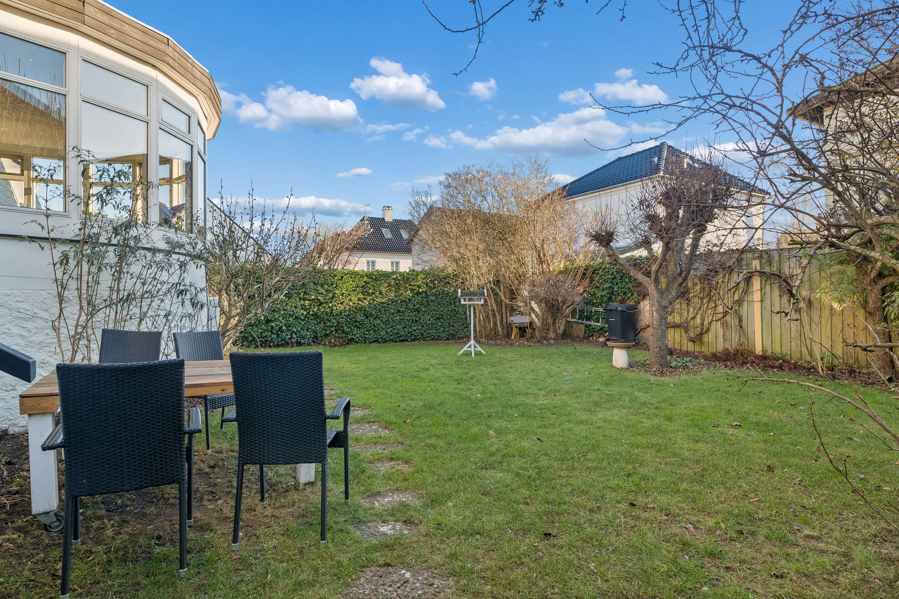Haven omkranser huset som et grønt og privat frirum med plads til både leg, afslapning og hyggelige stunder. Her får man ro, privathed og et uderum, der kan nydes store dele af året.