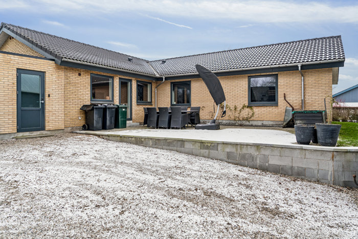 Boligen byder på en praktisk bryggersindgang, der gør hverdagen nem, ligesom der er både baggang og gode opbevaringsmuligheder. Husets hjerte er det store og lyse køkken-alrum i åben forbindelse med stuen, hvor der er plads til både familieliv og gæster. Her strømmer lyset ind, og rummenes størrelse giver mange indretningsmuligheder.