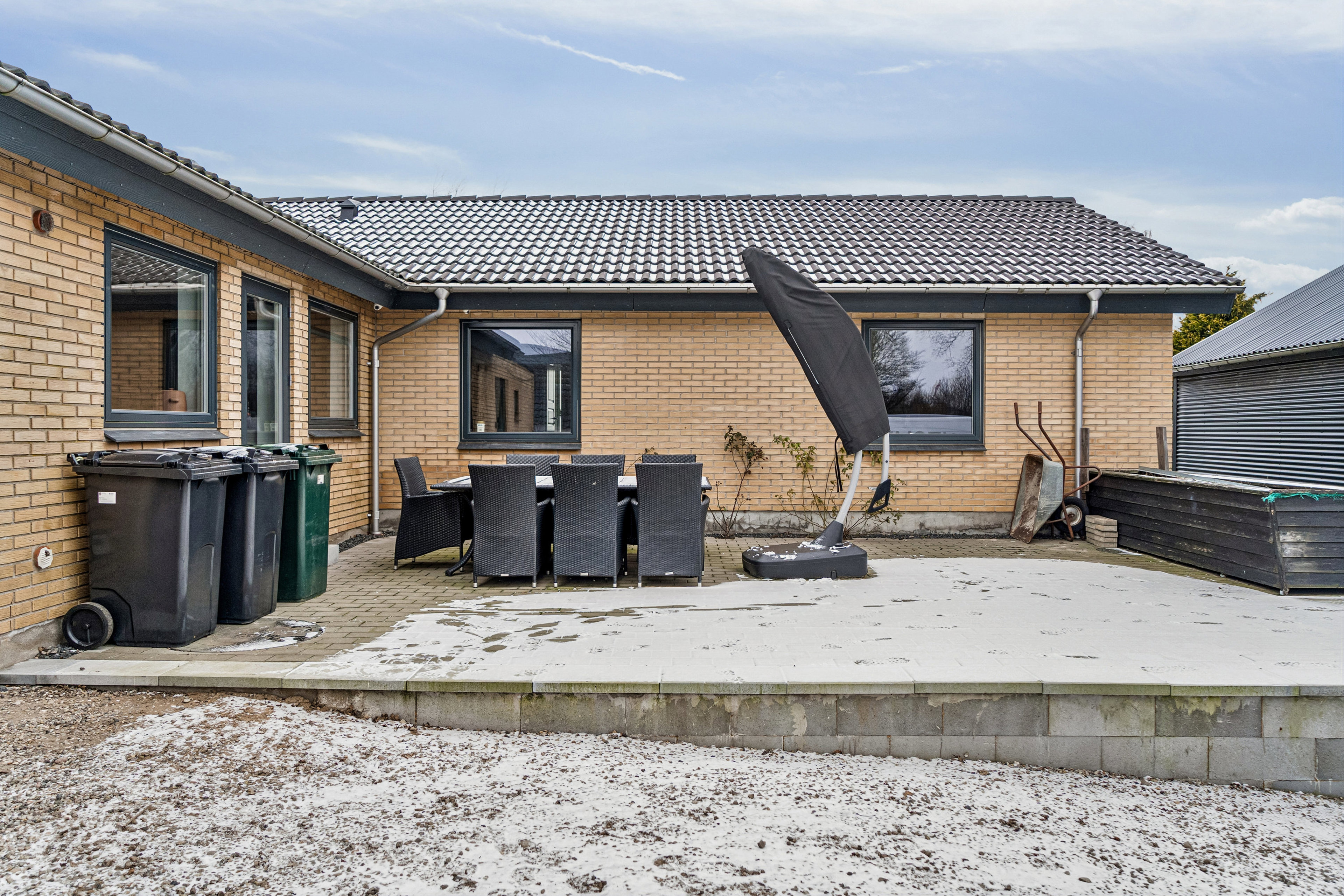 Haven er anlagt, så den er let at holde, men stadig giver plads til leg, afslapning og udeliv. Her kan sommeren nydes i rolige omgivelser uden at kræve meget vedligeholdelse.