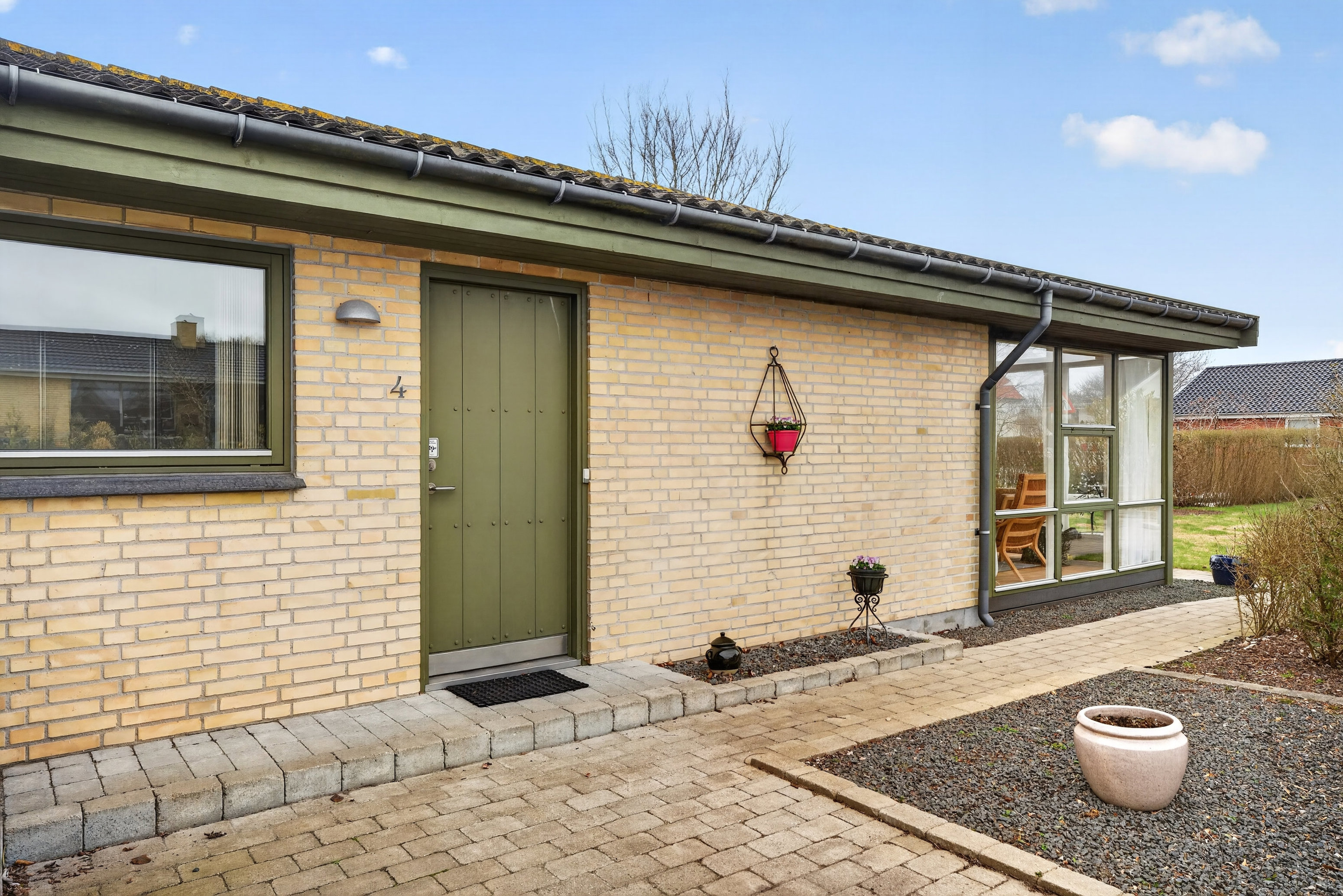 Som ejendom betragtet er huset nærmest prototypen på alt det, som har ladet etplansvillaen gå sin sejrsgang i hele landet. Udtrykket er både solidt og velfungerende, men det hjælper selvfølgelig også, at huset fremstår i velholdt stand – både inde og ude. Gule mursten og grangrønt træværk er en klassisk kombination, og i samme dur gemmer bryggerset sig i en lille, charmerende sidebygning.