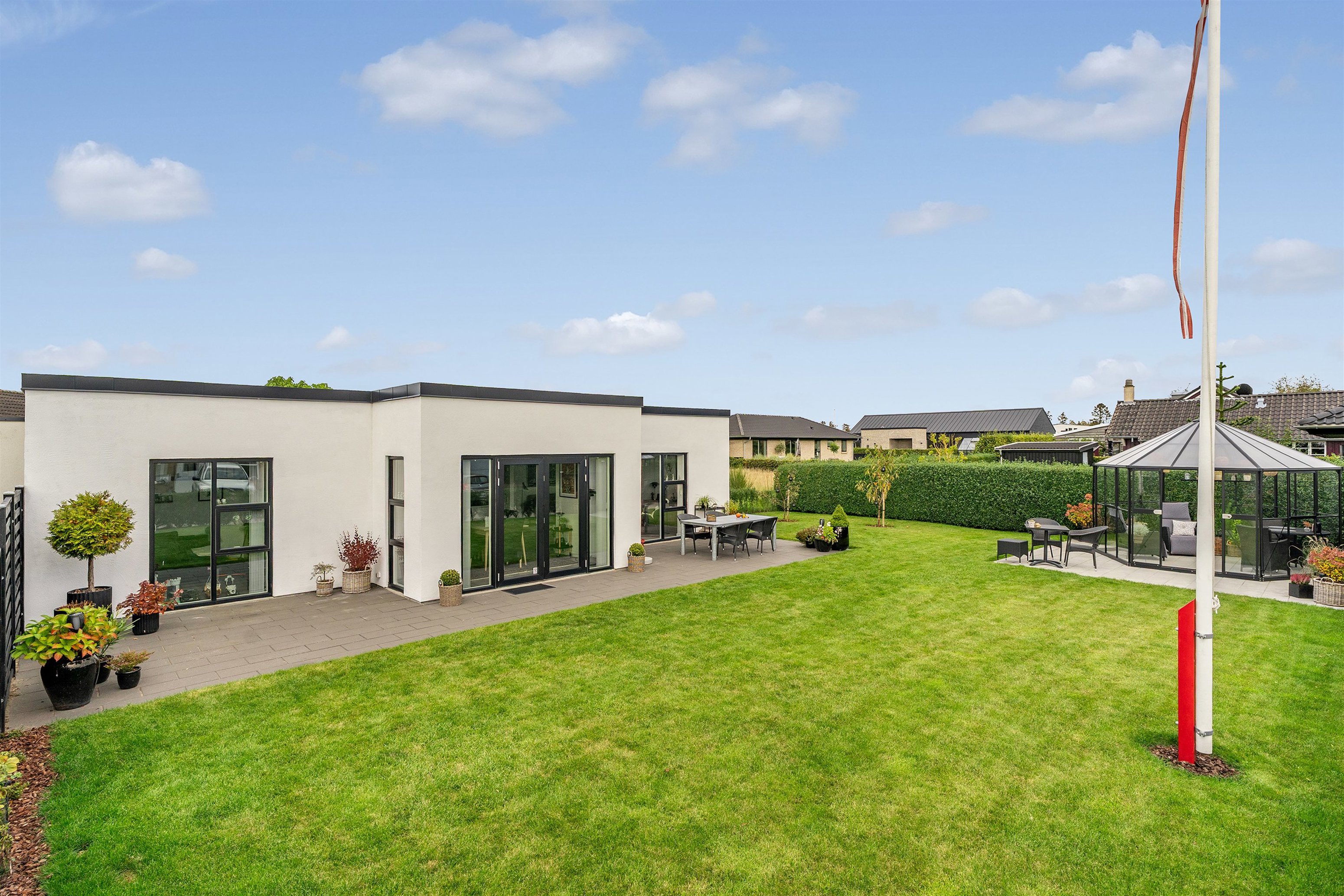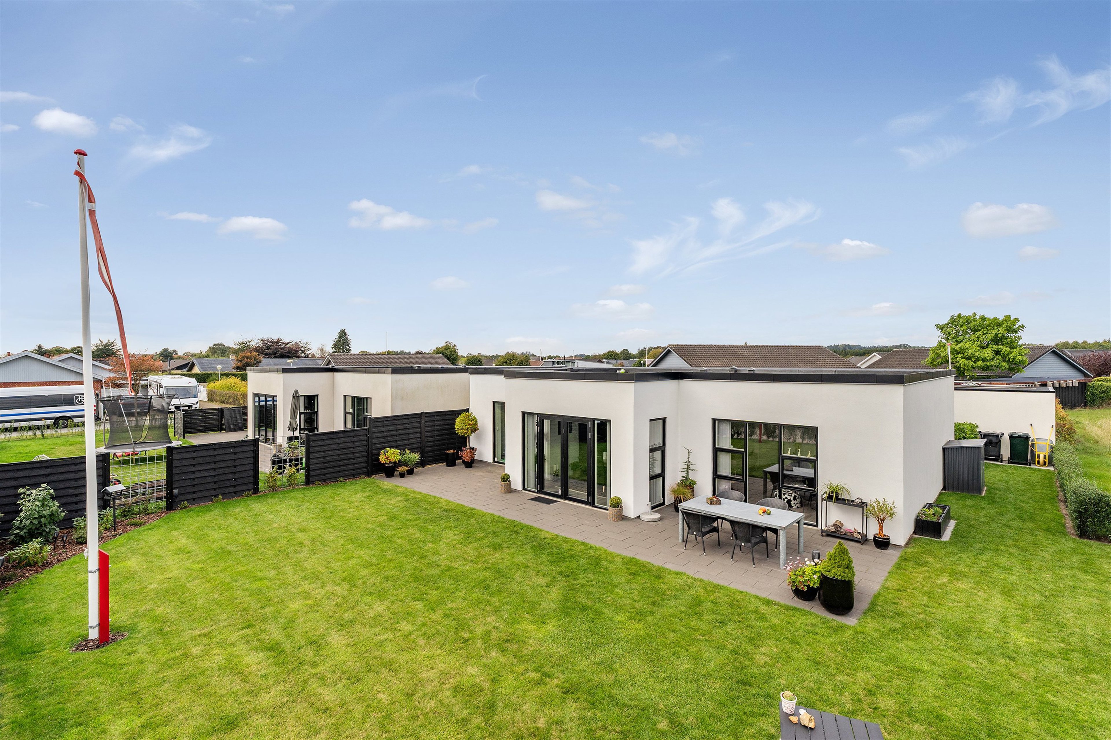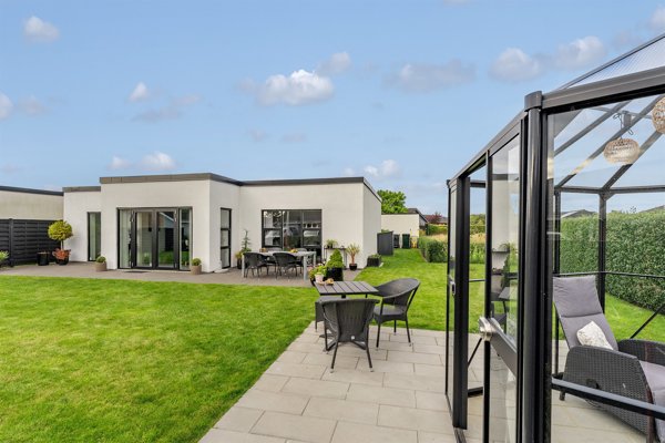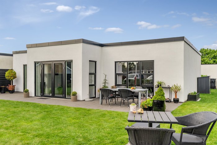 – en superflot og stilren etplansvilla, opført i 2022, beliggende helt på en rolig villavej.