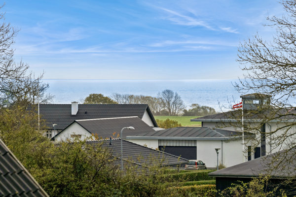 På første sal udfolder ejendommen sig med en helt særlig karakter. Loft til kip, fritlagte spær og store vinduespartier giver et eksklusivt og luftigt rum med en glas karnap og altan mod syd. Herfra er der en imponerende havudsigt med Fyn i horisonten. Stuen er rummelig og fleksibel med plads til både sofamiljø, kontor og hobby. Her er en nyere brændeovn til de hyggelige aftener. Derudover findes et fint soveværelse med loft til kip, skabe og et moderne badeværelse med bruseniche og gulvvarme.
