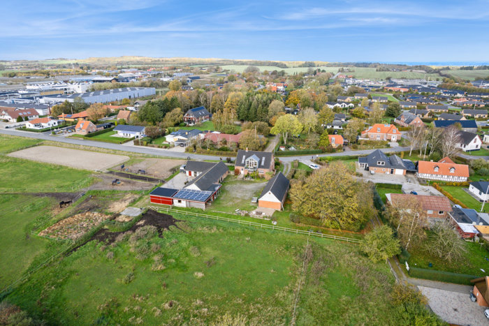 Omkring huset får du både en charmerende gårdsplads, indhegnet forhave, smuk baghave med gamle træer, bålplads, shelter og grønne opholdssteder, der indbyder til afslapning og udeliv. For hestefolket er her optimale forhold: en moderniseret stald med tre store bokse, separat foleboks og to udendørs bokse. Der er el, vand (eltraced) og gulvmåtter i alle bokse. Hele herligheden suppleres af et stort udhus klargjort til at etablere en gildesal, værksted eller mindre erhverv. Herudover findes carport med solceller, der bidrager til en lavere driftsøkonomi og et bæredygtigt energiforbrug.