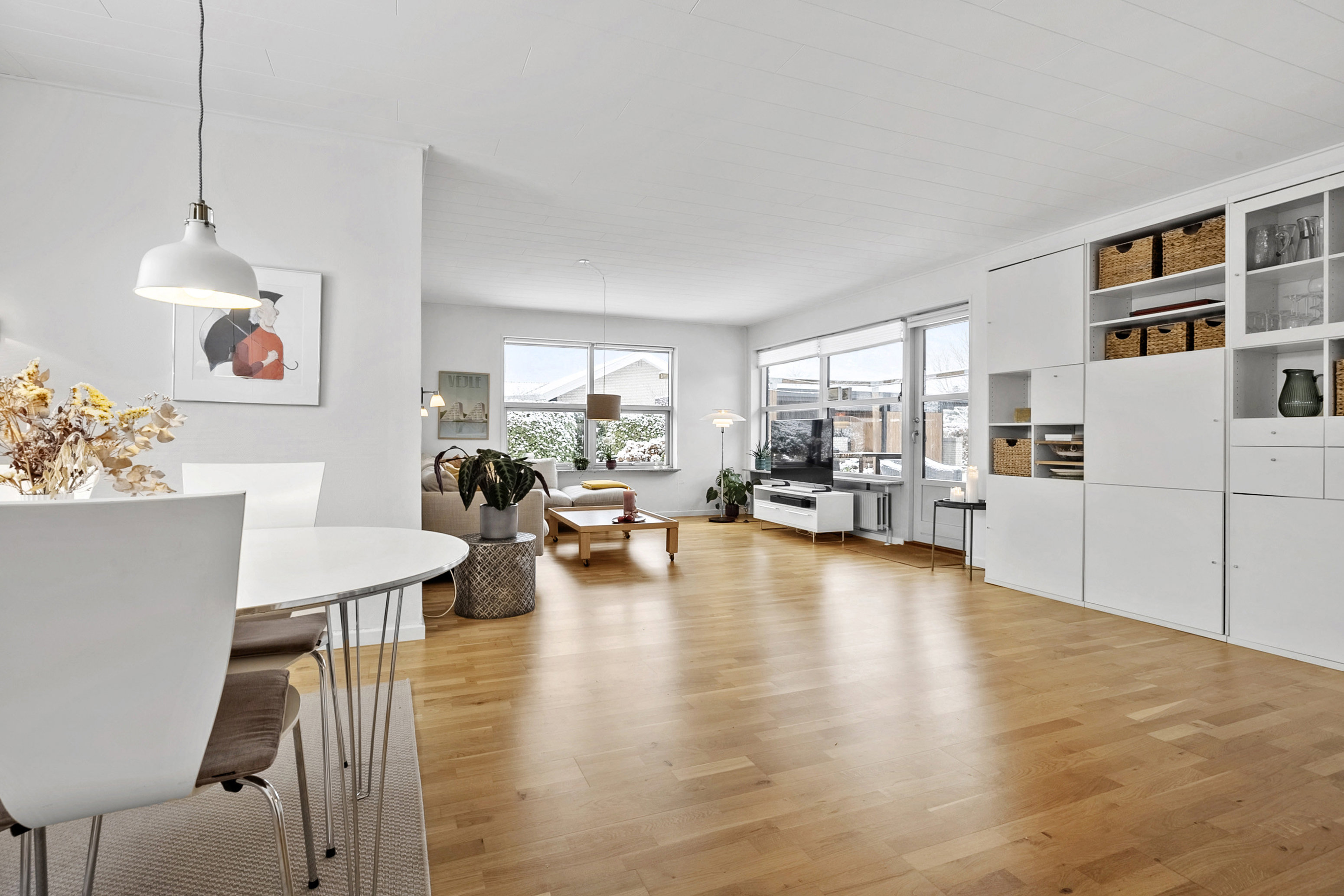 Her er et hjem, hvor hverdagen får lov at flyde naturligt, og hvor familielivet kan udfolde sig i trygge og rolige rammer. På et fredeligt vænge i Bramdrupdam ligger denne indbydende bolig, der emmer af plads, lys og nærvær – et sted, hvor både børn og voksne føler sig hjemme.