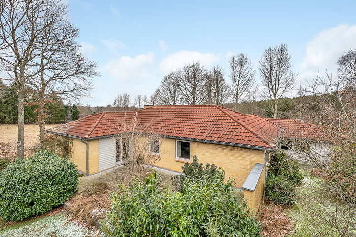 Hvis natur, hyggeligt landsbyliv og gode rammer om familielivet spiller en vigtig rolle i din boligsøgning, bør du se nærmere på denne regulære etplansvilla i Linå. Huset er indrettet med fire værelser, store samværsrum og et multirum med flere muligheder, mens udendørshyggen foregår på solrige terrasser lige op til den aktive natur.