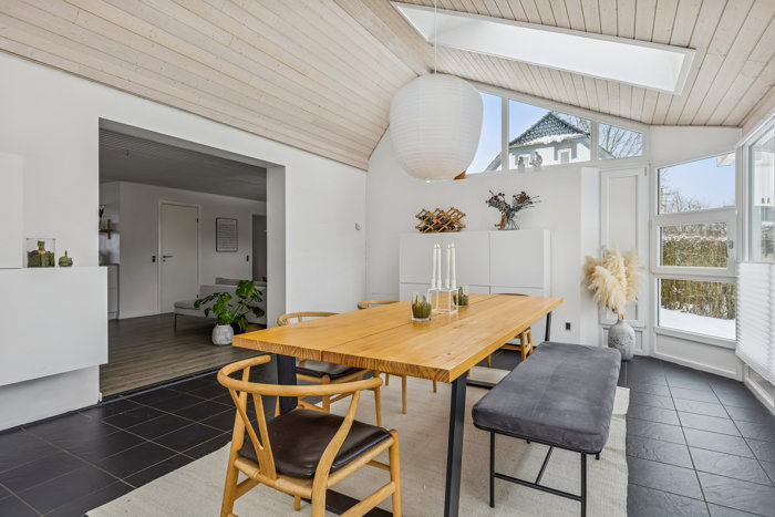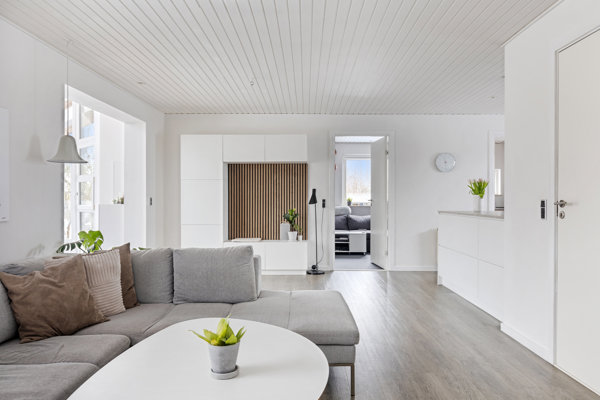 Boligen fremstår lys og rummelig med et dejligt lysindfald, som særligt fremhæves af ovenlysvinduerne, der tilfører hjemmet en behagelig og naturlig atmosfære dagen igennem. Planløsningen er både funktionel og indbydende, og hver eneste kvadratmeter er udnyttet optimalt.