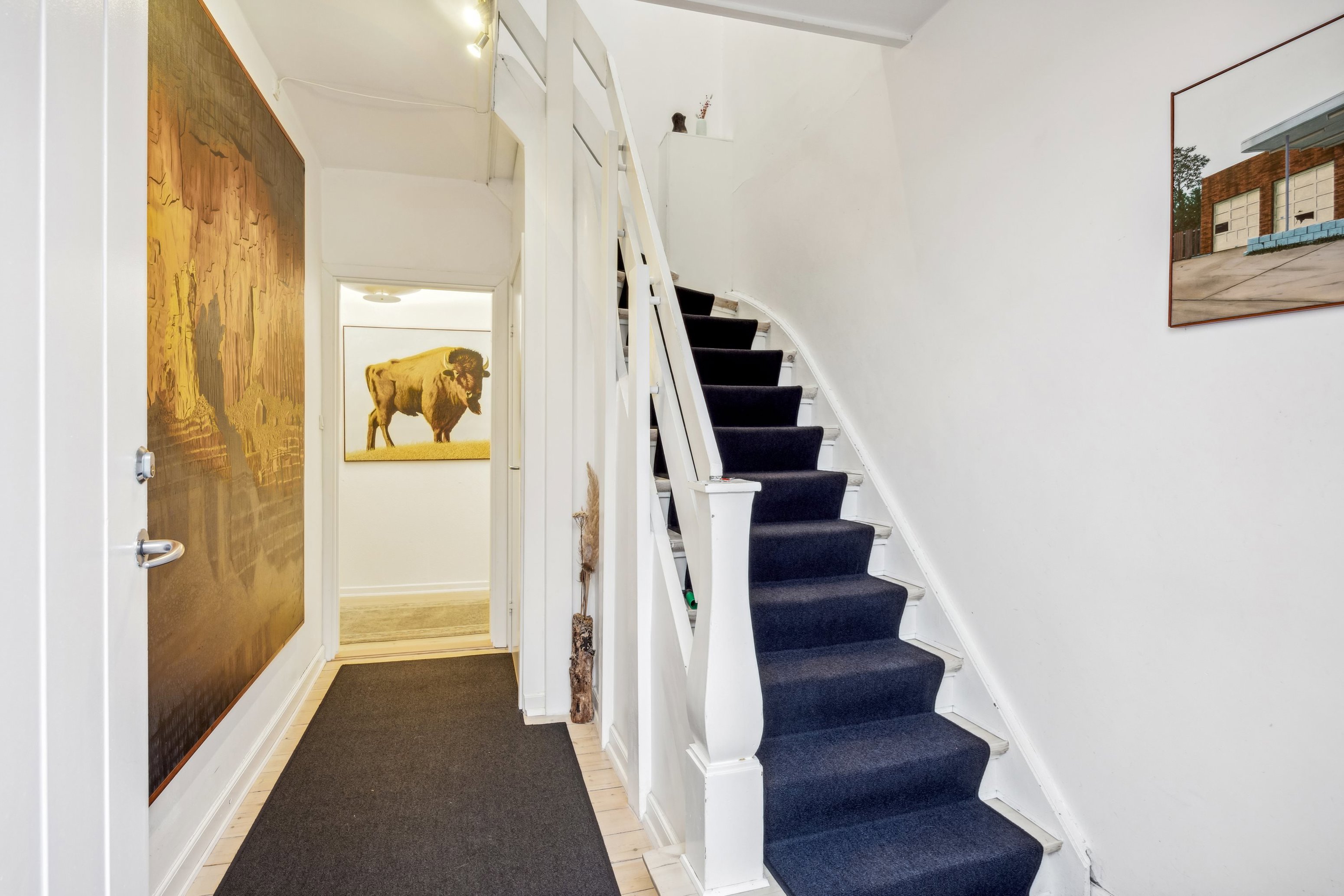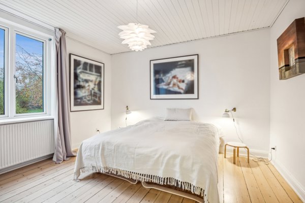 På 1. sal finder I en stemningsfuld tagetage på ca. 121 m² med ægte New Yorker-stemning, loft til kip og et fantastisk lysindfald. Det naturlige samlingspunkt er det store, åbne køkken/alrum/opholdsstue med god plads til både hverdag og gæster. Herudover rummer etagen to gode værelser, samt et nydeligt badeværelse med hvid sanitet og badekar med bruser.