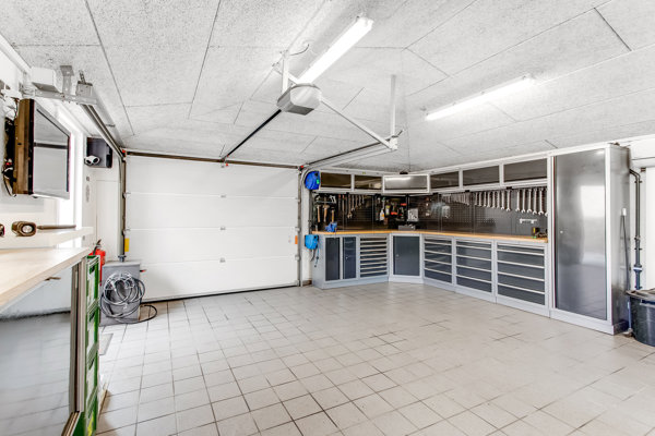 Garagen er noget helt særligt og har i 2007 gennemgået en ombygning med høj rejsning, vinduer og stor port, hvilket gør den velegnet til både bilentusiasten, håndværkeren eller til ekstra opbevaring. Til ejendommen hører desuden et separat cykelskur, der understøtter en praktisk og aktiv hverdag.