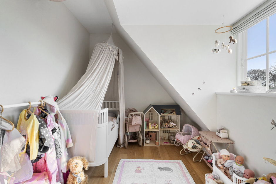 Huset er smukt og har gennemgået en totalrenovering med bl.a. tag, facader, vinduer m.m. Du tilbydes: Stor entre med garderobeskabe, lys hall med nydeligt gæstetoilet. Hele stueetagen har smukke lyse originale egetræssildebensgulve og højt til loftet. Ét stort køkken/alrum stue - oprindeligt 3 stuer en-suite, som er lagt sammen. En indbygget reolvæg, vitrineskab og svensk antik porcelænspejs, samt udgang til den store sydvestvendte terrasse i haven. Nyere snedkerbygget køkken i bedste materialer. Hele rummet er badet i sollys fra morgen til aften. 1. sal: To fine børneværelser, forældresoveværelse med udgang til altan, hvor der er flot udsigt over Klampenborg, stort smagfuldt badeværelse med badekar og brus og udsigt til Sølystparken. Underetagen: Fin og tør med flere depotrum, to gode store lyse værelser (ej godkendt til beboelse), badeværelse med brus, bryggers med udgang til baghaven.