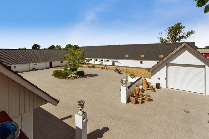 De 3 længer er fordelt med en ældre lade med dobbelt garage, en fantastisk stald med hestebokse af meget høj kvalitet, og det senest byggede maskinhus er med stor port i gavlen, og en enhver købers drøm. Her er masser af muligheder.