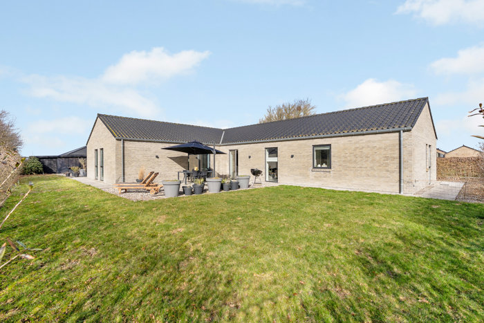Velkommen til Søndermarken 6B, en unik indflytningsklar etplansvilla fra 2020, skønt beliggende for enden af en lukket og rolig villavej i attraktive Assentoft.