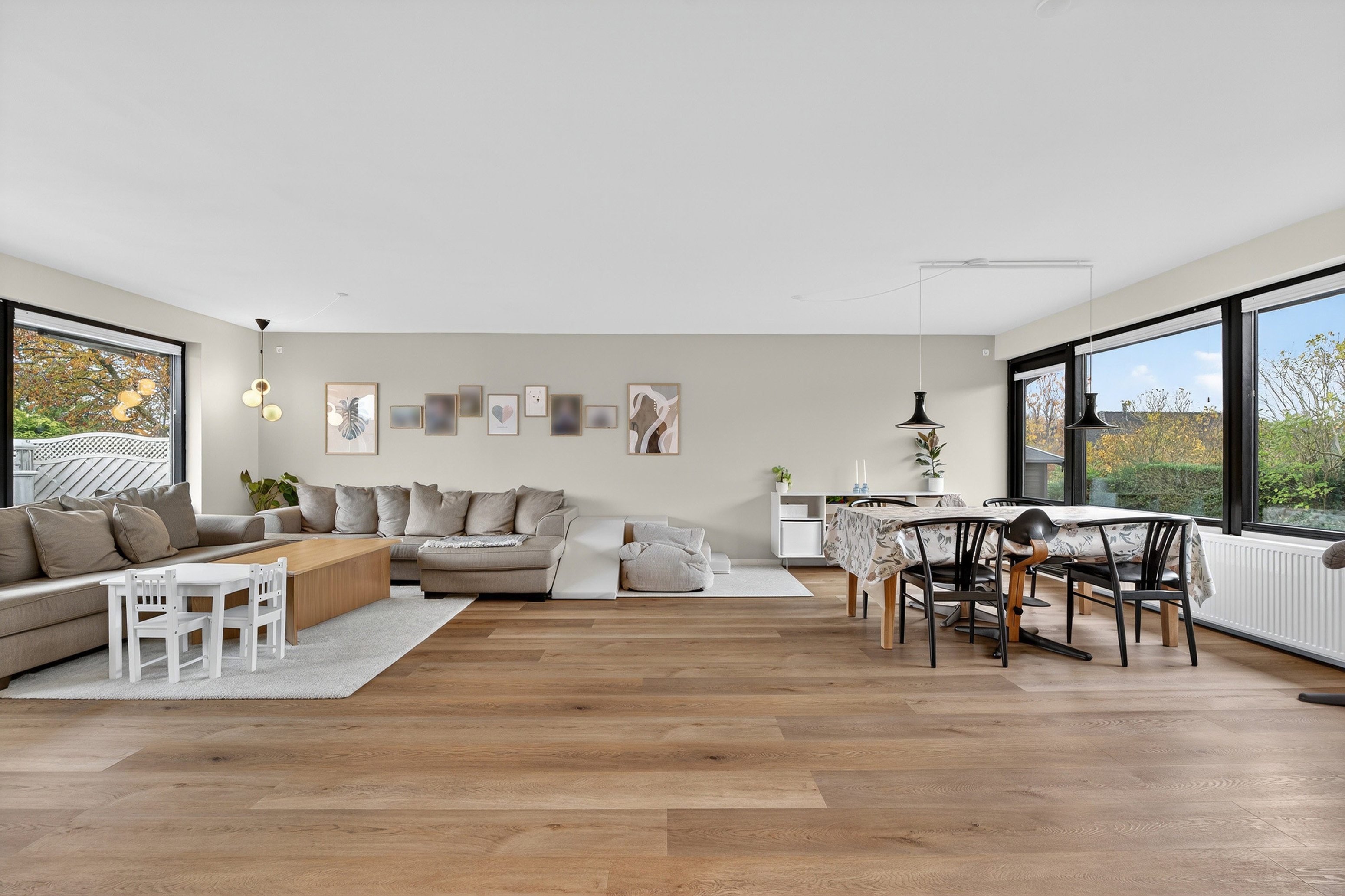Planløsningen er perfekt til familielivet med 152 m² bolig, hvor køkken-alrummet naturligt danner centrum