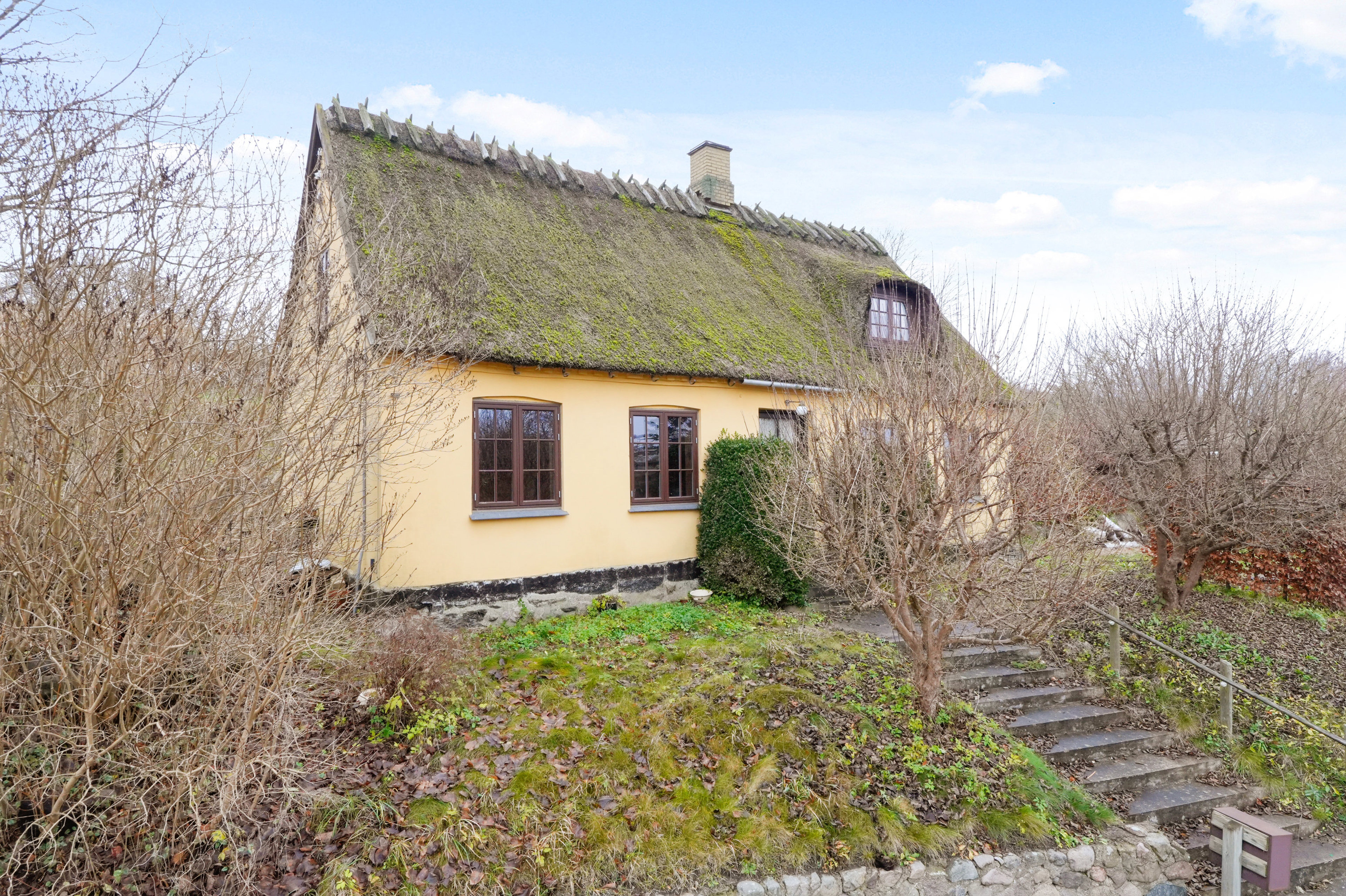 Villaen er fra starten et hyggeligt bekendtskab med lysegule facader, og selve huset ligger uforstyrret og lidt hævet over Søsum Bygade. Grundlæggende er det boligen for jer, som sætter pris på den charme, der følger med en klassisk stråtagsvilla. Sprossede vinduer, synlige loftsbjælker og trægulve hører for eksempel til de stemningsgivende anslag, som også vil fungere i en mere moderne kontekst.