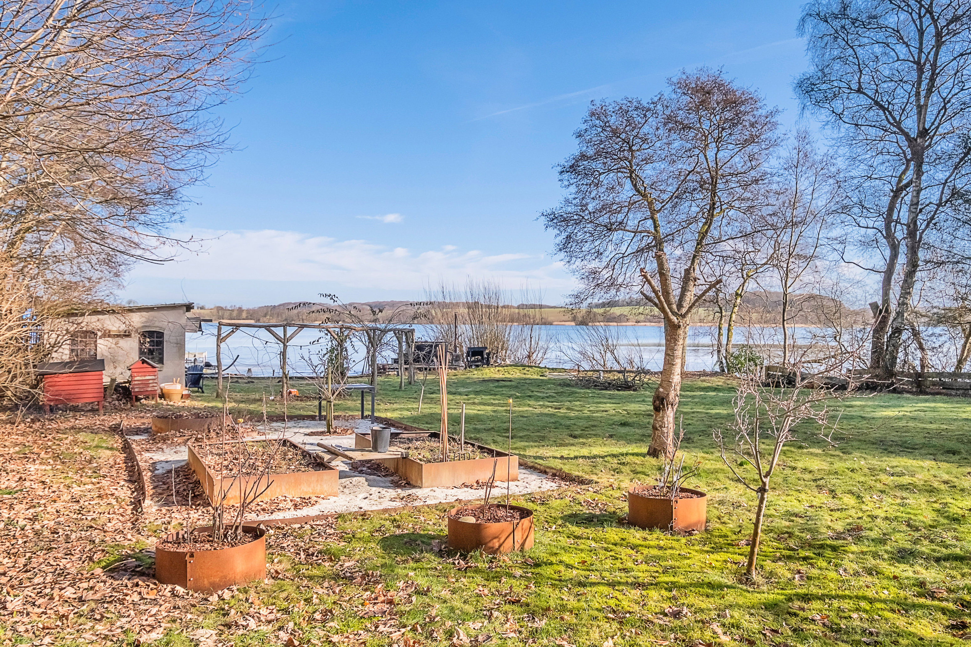 Grunden er på hele 1.650 m² og ligger helt ned til søbredden, hvilket giver en fantastisk mulighed for at skabe en bolig i absolut særklasse. Den eksisterende bolig har en begrænset værdi, og for mange købere vil potentialet især ligge i at bygge nyt eller opføre en bolig, der udnytter den unikke placering fuldt ud. Her er rammerne til at skabe et hjem, hvor arkitektur, natur og udsigt kan gå op i en højere enhed.