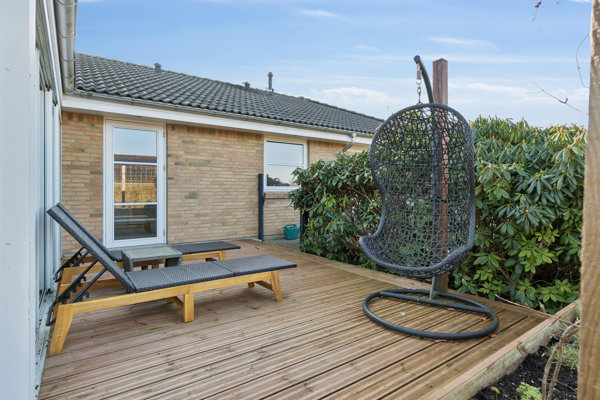 Fra udestuen er der udgang til terrasse og den pænt anlagte have, som er overskuelig og nem at holde – ideel til både afslapning og udeliv.