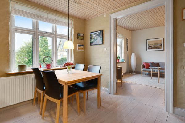 Boligen fremstår lys og indbydende med smukke, lyse trægulve i stueplan, som skaber en let og sammenhængende atmosfære på stueplanet. Planløsningen er enkel og funktionel, og boligen er indflytningsklar – her er det let at komme til, og man kan skabe de ændringer man evt. kunne ønske sig i sit eget tempo - uanset, er det let at føle sig hjemme fra første dag.