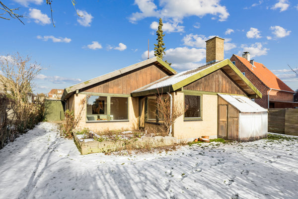 I overtager en klassisk gulstensvilla fra 1974. Huset ligger på en hyggelig villavej med minimal trafik, for vejen ender ud i et lukket vænge. Samtidig placerer villaen sig på en attraktiv koteletgrund, så I kommer til at bo dejligt privat og tilbagetrukket for enden af den lange indkørsel, der tager jer på afstand af vejen.